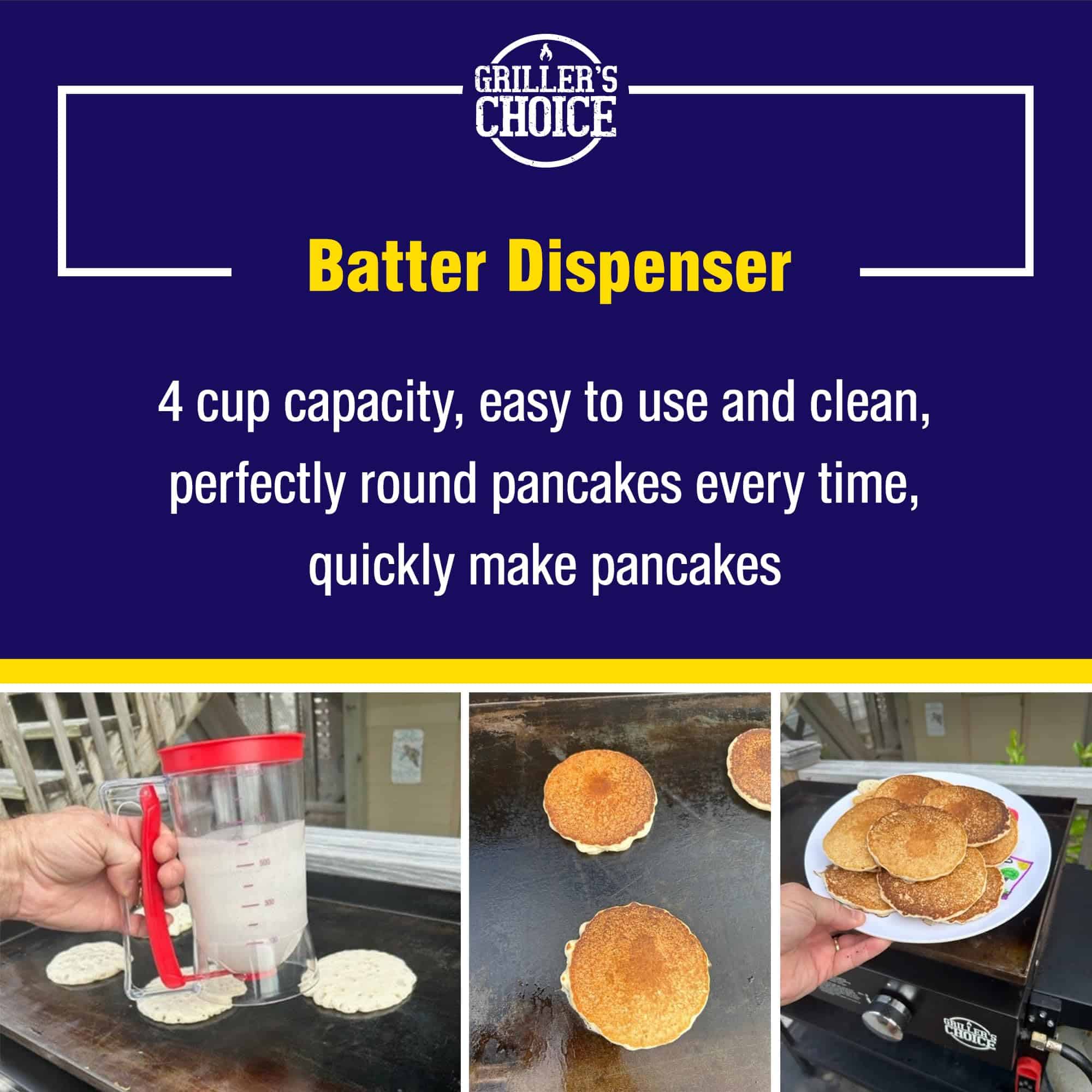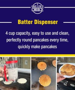 Bienvenido al Kit de Desayuno para Parrilla Griller’s Choice, tu solución definitiva para mañanas perfectas llenas de delicias de desayuno. Este kit tiene todo lo que necesitas para convertirte en el chef de la mañana que siempre has soñado ser. Con nuestro kit de desayuno para parrilla, moldes para panqueques y mucho más, estás listo para hacer tus mañanas más brillantes y sabrosas. Nuestro Kit de Desayuno para Parrilla está diseñado pensando en tu comodidad, mezclándose sin esfuerzo en tu rutina matinal. Ya sea que te estés preparando para un desayuno familiar o entreteniendo a invitados, este kit asegura que tu festín matutino sea simplemente espectacular. El Kit de Desayuno para Parrilla Griller’s Choice incluye un práctico dispensador de masa premium, una resistente prensa de tocino de hierro fundido y moldes para huevos fáciles de usar. Con estas herramientas a tu disposición, hacer un desayuno abundante es tan fácil como dar vuelta a un panqueque. El dispensador de masa para panqueques es un cambio de juego, permitiéndote crear panqueques perfectamente moldeados cada vez. El dispensador de masa para panqueques está diseñado con precisión, asegurando una experiencia de cocina sin ensuciar mientras te proporciona la cantidad perfecta de masa para tus panqueques. ¡Pero no nos detuvimos ahí! La prensa de tocino Griller’s Choice es imprescindible para cada cocinero. Te ayuda a lograr un tocino crujiente y cocinado de manera uniforme sin los rizos habituales. Además, nuestros moldes para huevos te permiten crear huevos perfectamente moldeados, agregando un toque estéticamente agradable a tu plato de desayuno. El Kit de Desayuno para Parrilla Griller’s Choice es un imprescindible para cada cocina y parrilla exterior. Es el regalo perfecto para los seres queridos que disfrutan cocinando o cualquier persona que quiera llevar su juego de desayuno al siguiente nivel. Con nuestro kit de desayuno, puedes convertir cualquier mañana en un festín de desayuno encantador. ¡Feliz cocinar!