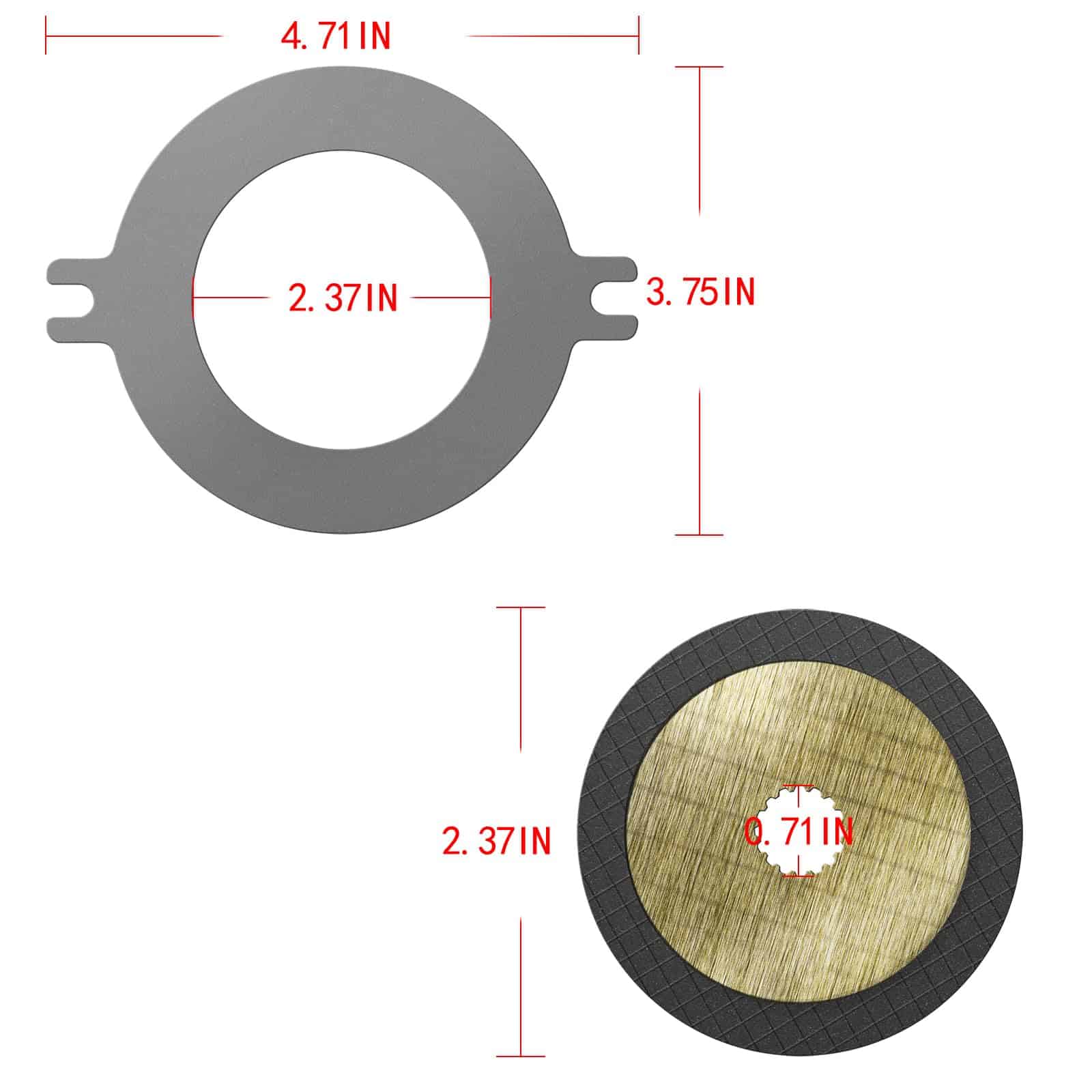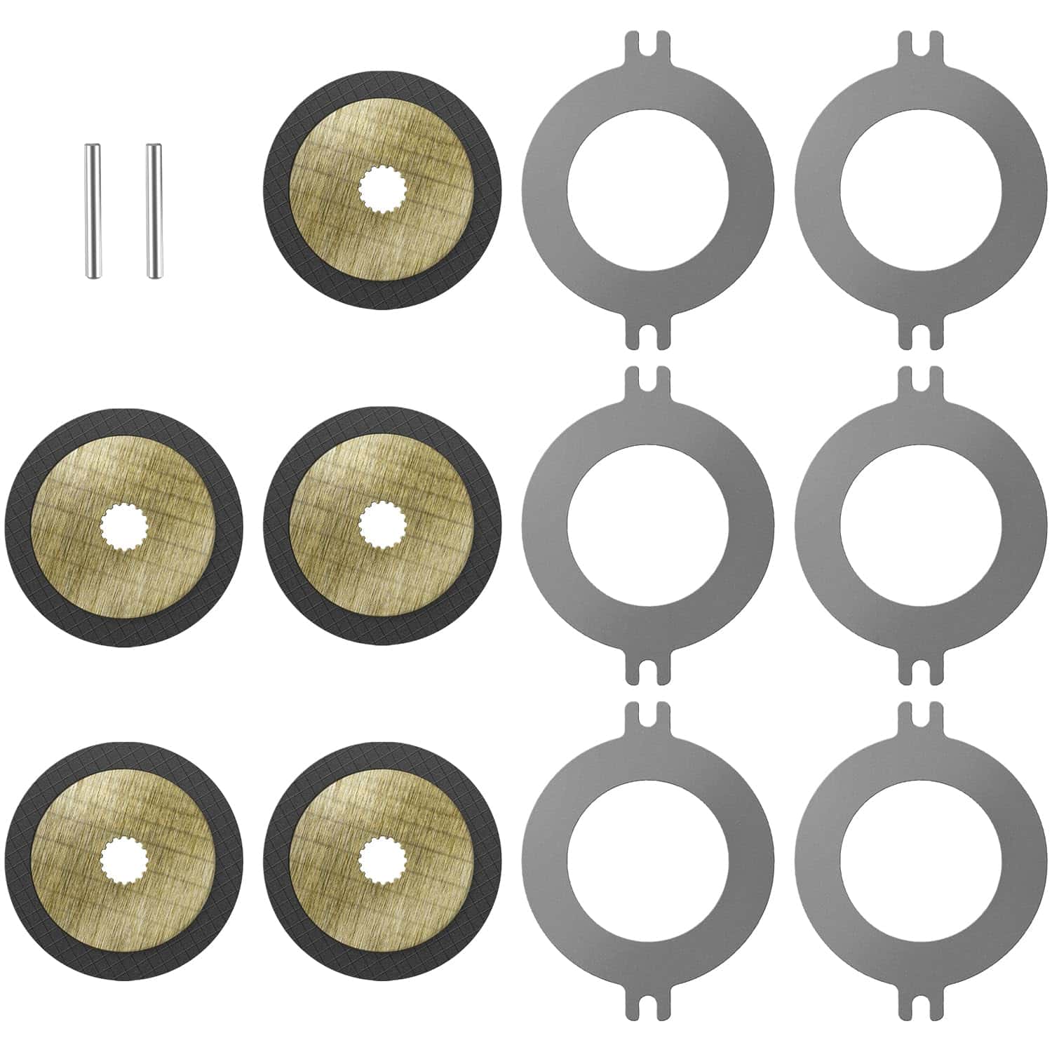 Este Kit de Disco de Freno Húmedo incluye 6 X Separadores de Acero, 5 X Discos de Freno, 2 X Pasadores.