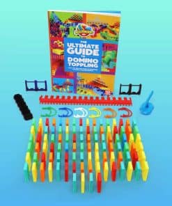 ¡Este es el lugar de inicio definitivo para la diversión de los dominós derribados y las reacciones en cadena! ¡Este kit está repleto de todos los elementos esenciales y cargado de todos los trucos y consejos para convertirse en un maestro de los dominós! En su interior descubrirás todos los mejores trucos utilizados para crear reacciones en cadena de dominós impresionantes y elaboradas configuraciones de clase mundial. Con más de 160 trucos que se pueden enlazar para crear miles de combinaciones de trucos diferentes, ¡seguro que sorprenderás a todos los que lo vean! Incluye: 100 Dominós Cinéticos, 1 Guía Definitiva para Derribar Dominós (Libro), 12 Arcos, 2 Reactores de Línea, 1 Base de Pista Rápida, 6 Clips de Pista Rápida, 1 Plantilla y 1 Hilo.