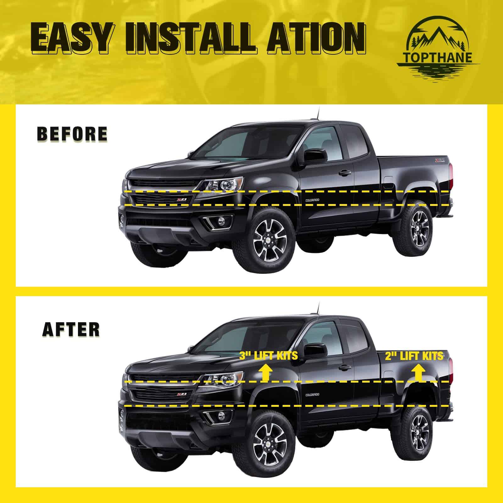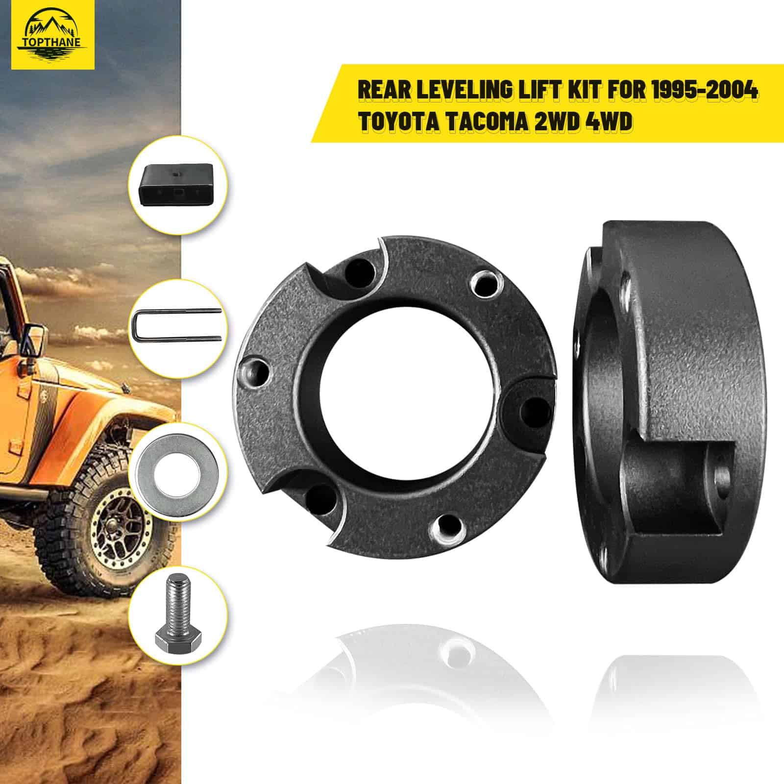 2. Ingeniería de Precisión para un Ajuste Perfecto: Diseñado específicamente para Toyota Tacomas 1995-2004, nuestro kit de elevación niveladora garantiza un ajuste perfecto tanto para configuraciones de 2WD como 4WD. Disfruta de una integración perfecta que coincide con las especificaciones únicas de tu vehículo.