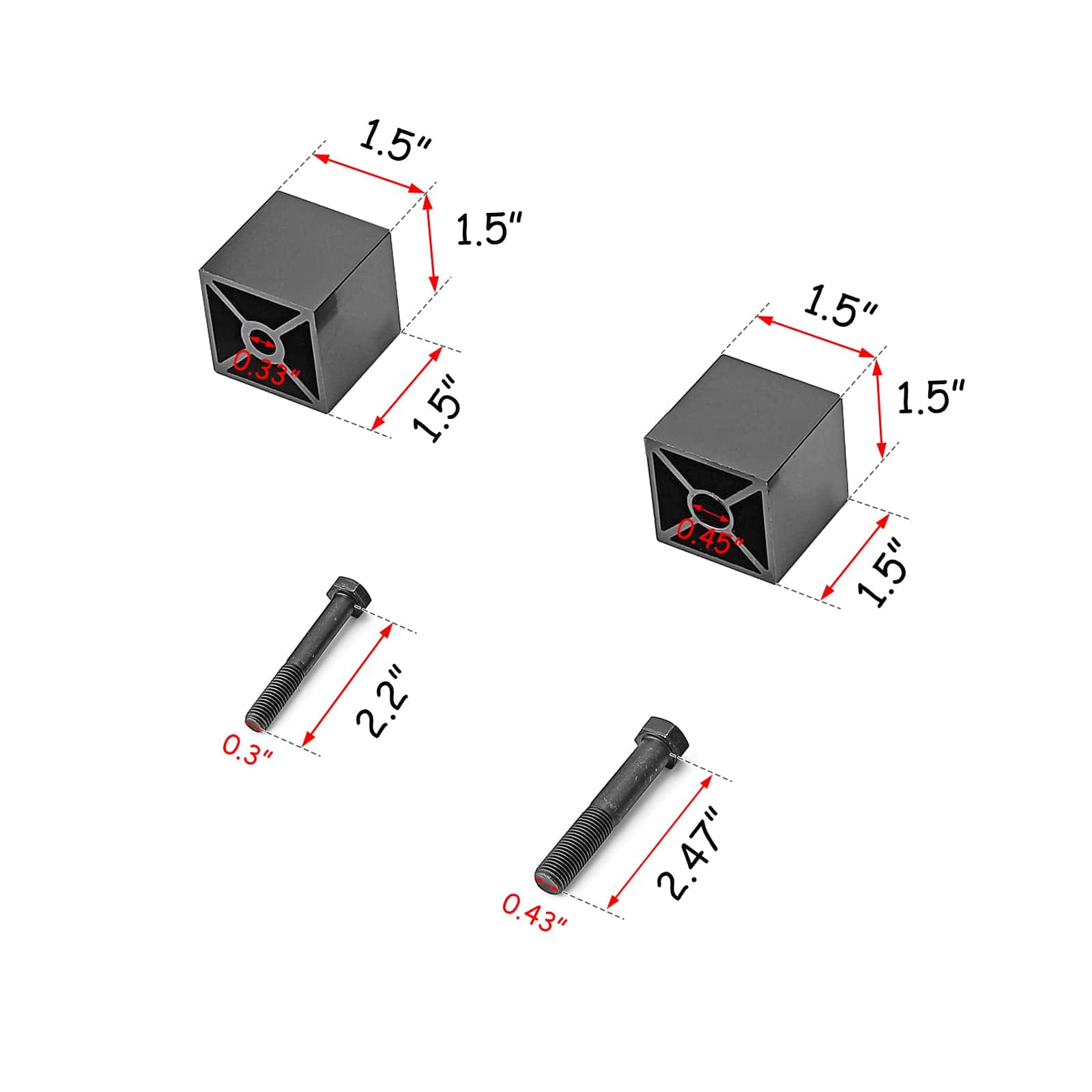 Ajuste: Apto para Jeep Wrangler TJ 1997-2006. Especificaciones: Aplicación de perno en sencillo. Puede elevar/subir su asiento 2 pulgadas desde la altura de fábrica. Aumente la visibilidad, comodidad y espacio de almacenamiento bajo el asiento de su JP. Hecho de aluminio billet T6 mecanizado por CNC. Acabado de superficie: Anodizado negro. Viene con instrucciones de instalación. Paquete incluido: 1x kit de elevación de asiento de 1.5″