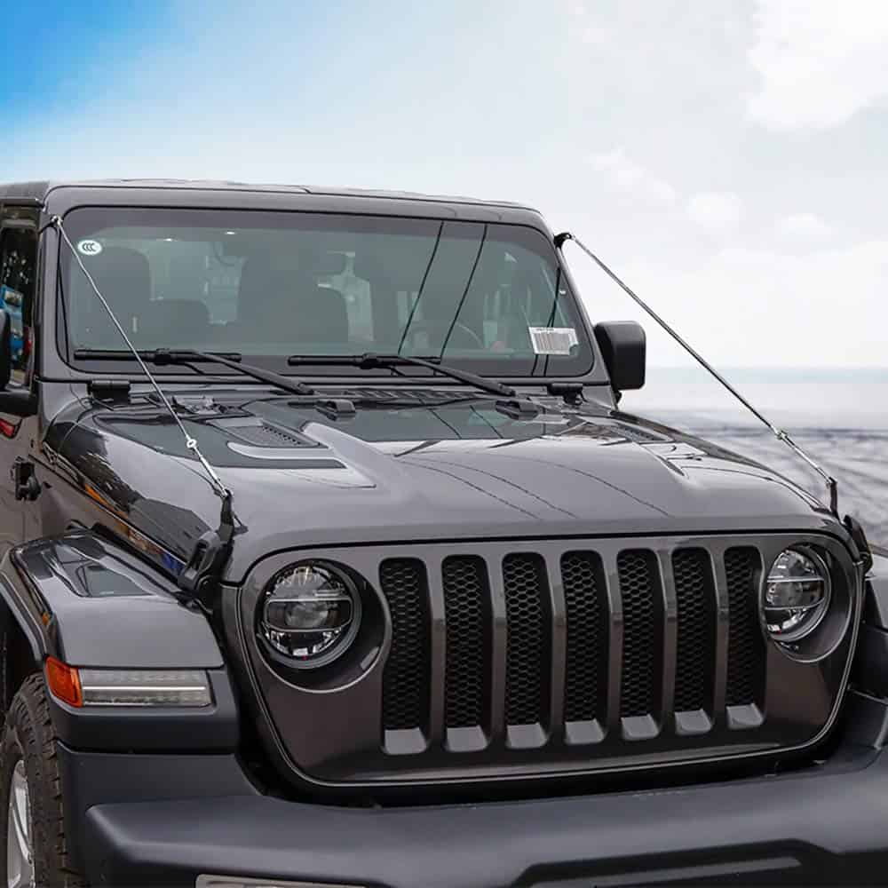 Kit de Elevación de Ramas Ajustable para Jeep Wrangler JL JLU 2018-2022 Gladiator JT. Protector a Través de la Jungla y Eliminador de Obstáculos. Este kit de elevación de ramas resistente está diseñado para proteger tu vehículo contra daños causados por árboles y arbustos. Fabricado con un material de acero inoxidable resistente para una durabilidad y servicio duraderos.