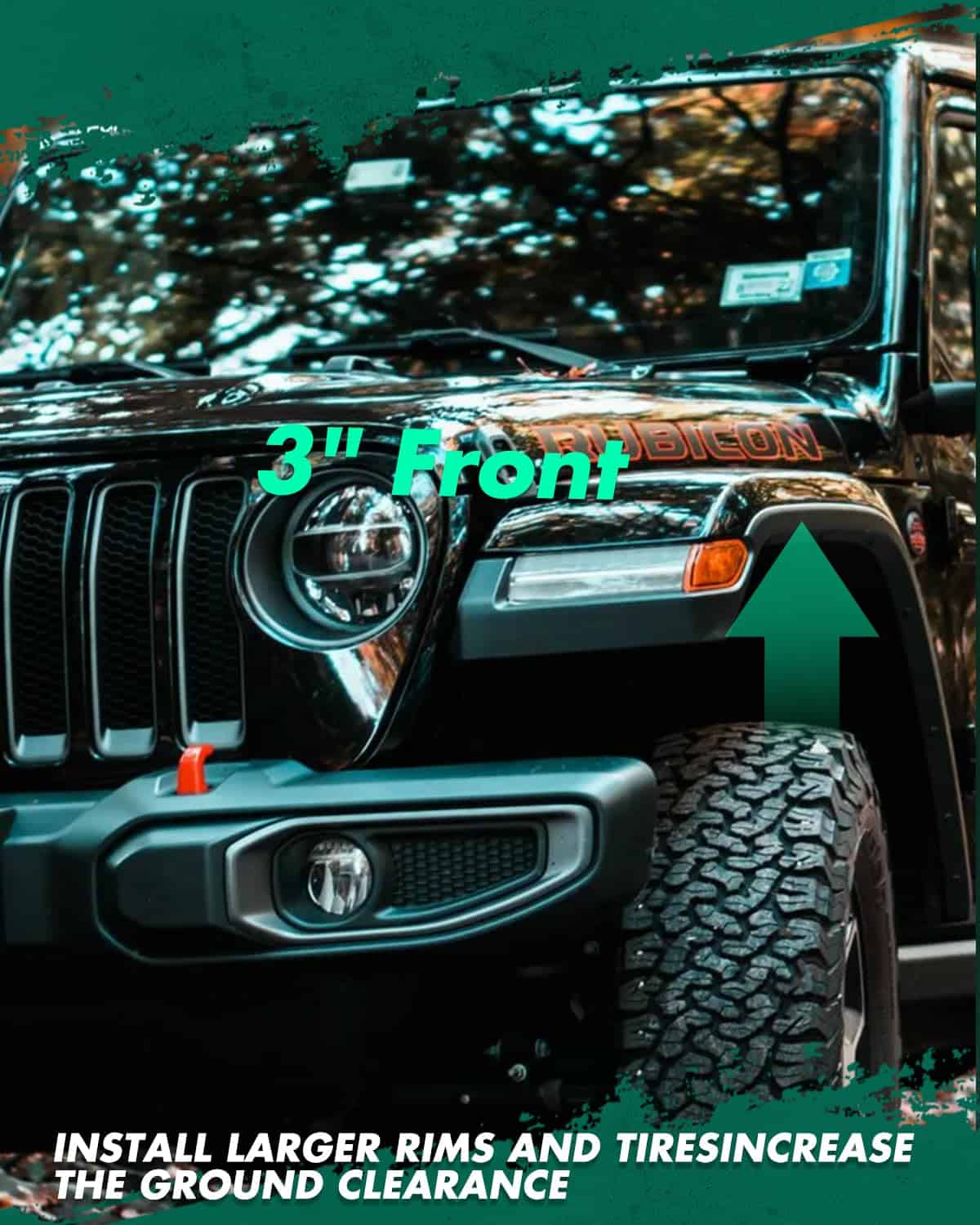 2. Atención Kit de Elevación de 3 pulgadas Delantera La altura de elevación y el grosor del kit no son 1:1 debido a la geometría de la suspensión. El grosor de un espaciador de amortiguador es de 1.69 pulgadas).