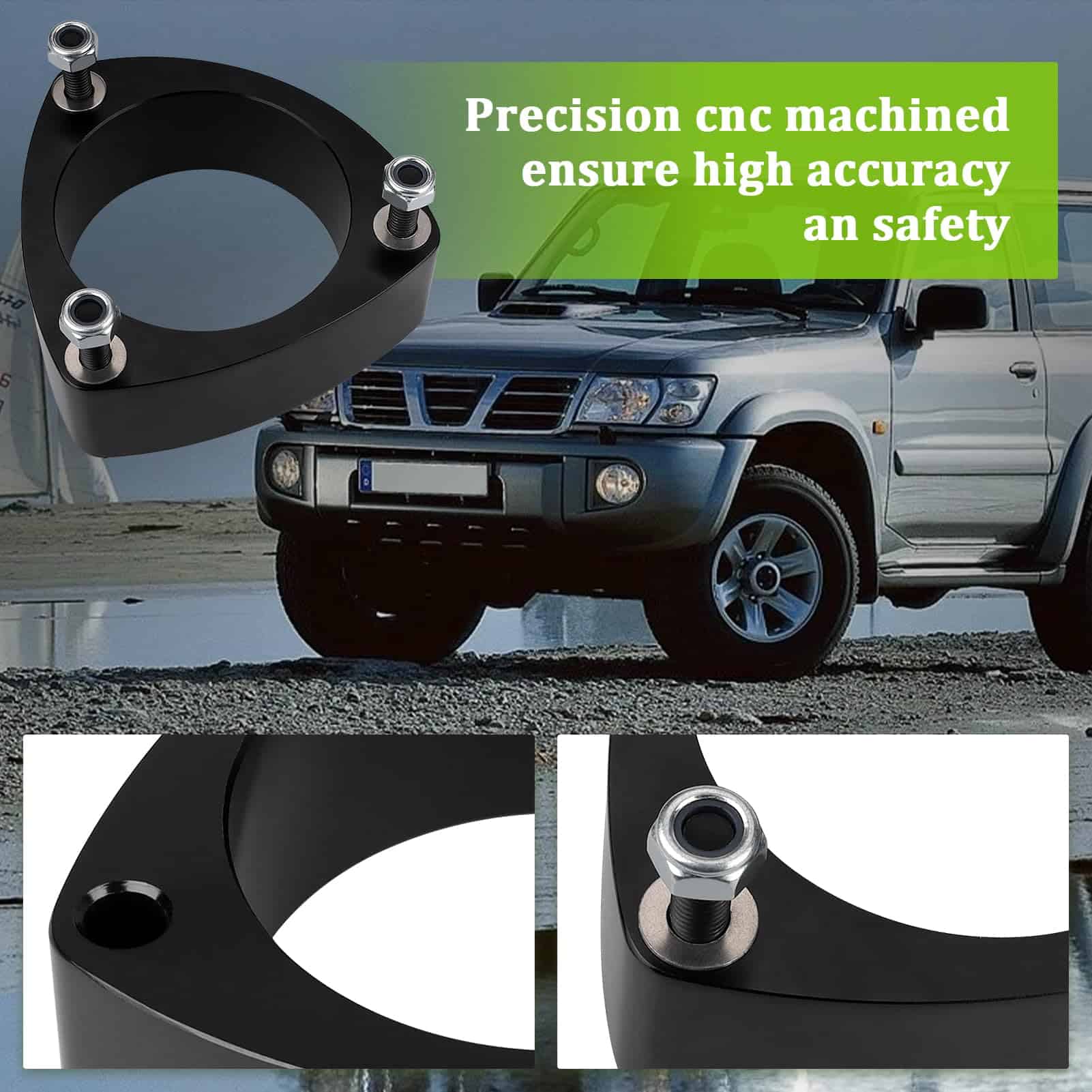 3. Aviso: Kit de Elevación de Suspensión que Reemplaza la Pieza OE Número 46480. Por favor, ten en cuenta que el grosor del espaciador no es una relación 1:1 con la altura de elevación. Se recomienda medir la altura de conducción de tu vehículo antes y después para verificar que se haya logrado la cantidad total de elevación.