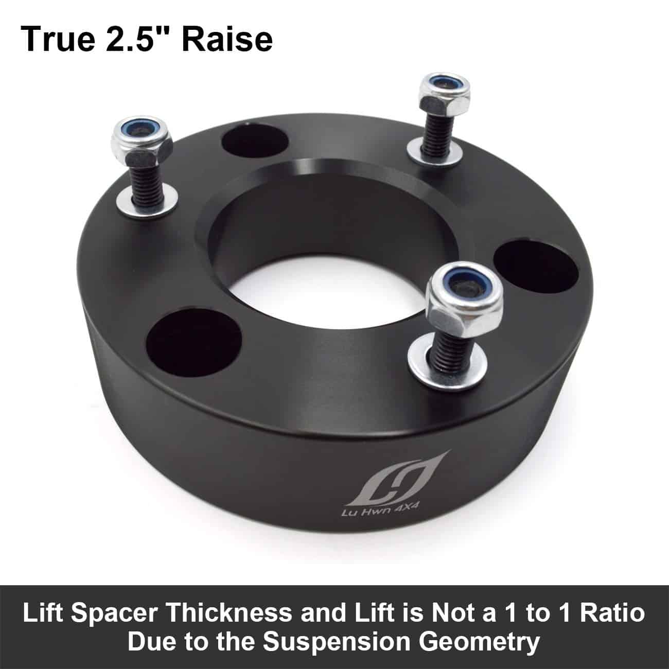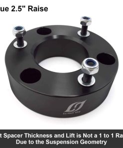 Este kit de elevación es compatible con su Silverado/Sierra 1500 y lo elevará en 2.5″ reales. El grosor del espaciador de elevación y la elevación no son una relación de 1 a 1 debido a la geometría de la suspensión.