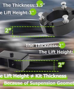 Compatibilidad: 2005-2020 Toyota Tacoma 2WD 4WDAviso: Este kit elevará la parte delantera de su automóvil en 3 pulgadas y la parte trasera en 2 pulgadas. Debido a la geometría de la suspensión, la proporción de la altura de elevación al grosor del kit no es de 1:1. El grosor real del kit de elevación es inferior a la altura de elevaciónVentaja: Forjado en aleación de aluminio 6061-T6, procesamiento automático CNC, anodizado de superficie y tratamiento térmico, y pernos de grado 12.9 endurecidos son instalados de antemano, lo que no solo garantiza una gran precisión y estabilidad, sino que también mejora la dureza y resistencia a la corrosión del material