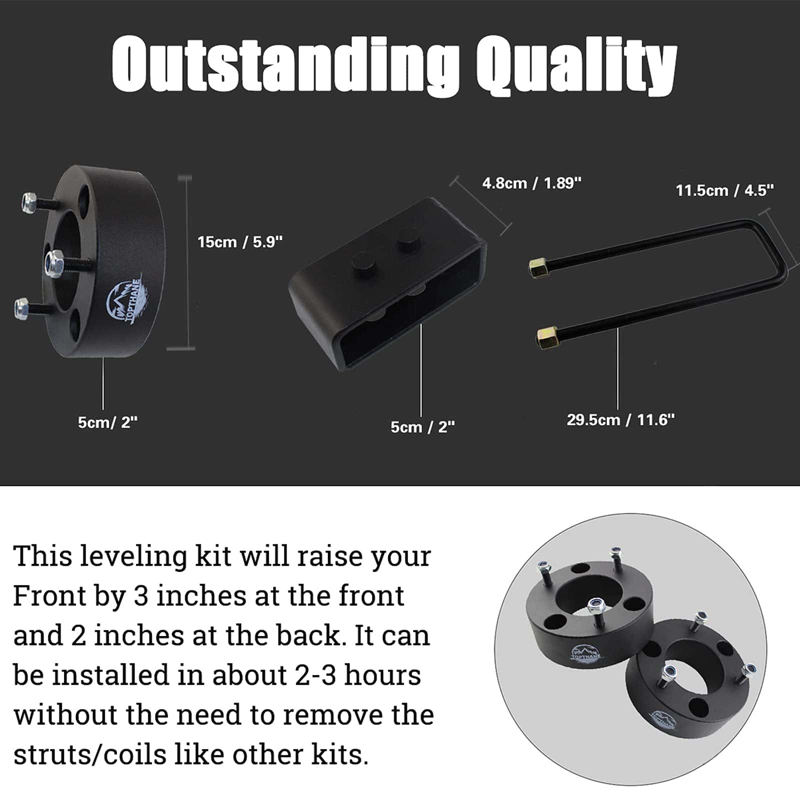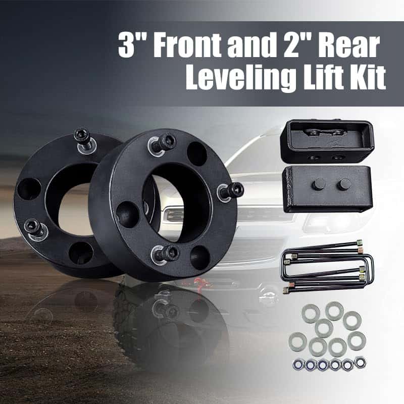 Juegos de espaciadores de nivelación de 3 pulgadas para la parte delantera y espaciadores de elevación de 2 pulgadas para la parte trasera.