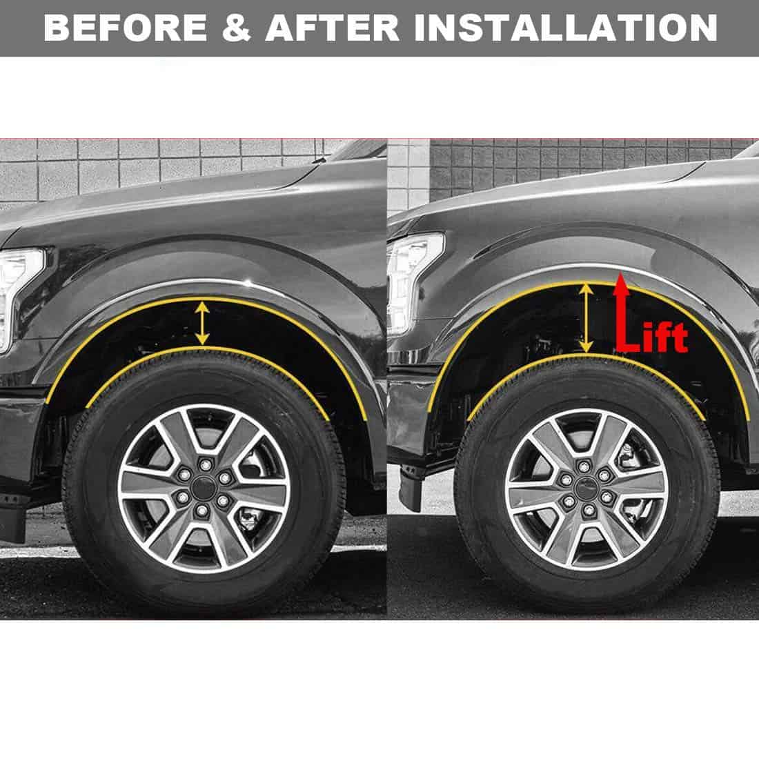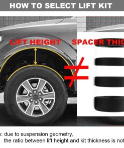Nota: Antes de instalar el kit de nivelación, asegúrese de haber comprado el kit de nivelación compatible para su vehículo. Se recomienda alineación de ruedas después de la instalación o rozará sus neumáticos. No hay problemas con las líneas de freno, no es necesario cortar o moler durante la instalación.