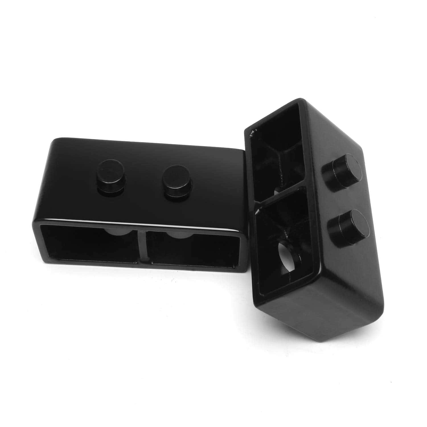 Material: Estos bloques traseros están hechos de acero al carbono y están recubiertos de negro en polvo para que coincidan con su suspensión de fábrica.