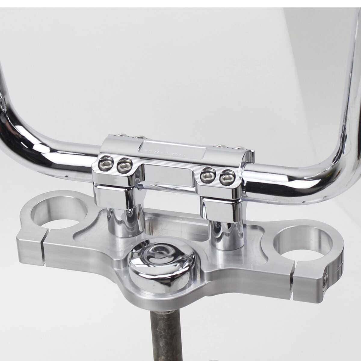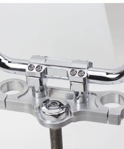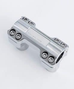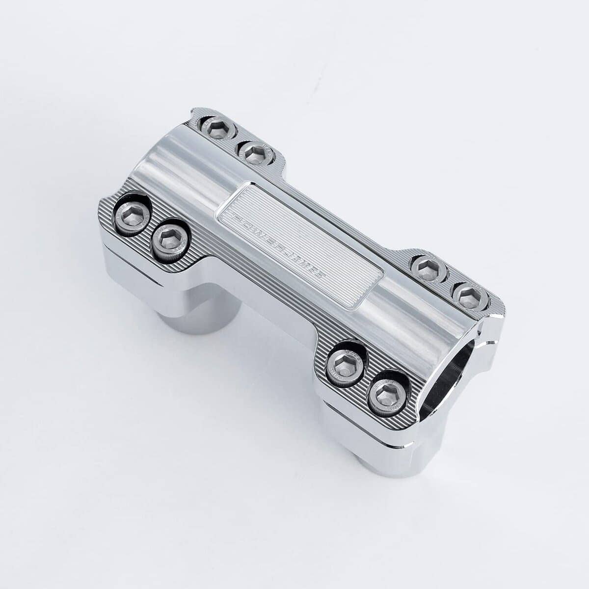 Construido con aluminio 6061 T6; Kit de elevadores de manillar de 1 1/4 pulgadas que se adapta perfectamente a motocicletas Harley Fat Boy, Softail, Dyna, Sportster y Road King. Estos elevadores de manillar están mecanizados con tecnología de corte CNC para una estructura sólida pero ligera. Acabados en cromado para un aspecto brillante y de espejo. Diseñado con el logotipo de POWERJAMES para un toque único y deportivo en su motocicleta. Fáciles de instalar y compatibles con todas las áreas de sujeción de 1 1/4″. Se vende en juego, incluyendo todos los herrajes necesarios para la instalación.