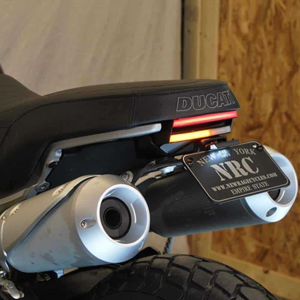 El kit de eliminador de salpicaderas Ducati Scrambler 1100 de New Rage Cycles incluye: – Luz trasera totalmente integrada con los LEDs más brillantes del mercado – Monturas de placa estándar o escondidas – Luz de placa LED – Arnes de conexión plug and play – Acomoda placas de matrícula de EE. UU. y de la UE Nuestro kit plug & play te ahorra tiempo y dinero en la instalación, ¡y te permite enchufar y andar directamente!