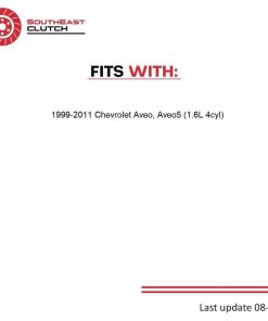 En SouthEast Clutch nos especializamos en kits de embrague, componentes de embrague, volantes de inercia y somos líderes en reemplazo de volantes de doble masa para vehículos equipados con ellos. Nuestro servicio y experiencia supera a la competencia. Nos comprometemos a proporcionar las mejores piezas a los mejores precios. Cada pedido se envía rápidamente para que recibas tus productos lo más pronto posible. Entendemos lo importante que es tener piezas de calidad superior y confiables. Todos nuestros kits de embrague pasan por una rigurosa inspección personal antes de salir de nuestro almacén. Este artículo incluye: Placa de Presión Premium HD nueva, Disco de Embrague HD nuevo (8-1/2″ – 24 Estrías) nuevo, Cojinete de Embrague nuevo, Herramienta de Alineación nueva, Paquete de Grasa de Alto Rendimiento. Aplicación de Vehículo: 1999-2011 Chevrolet Aveo, Aveo5 (1.6L 4cil).
