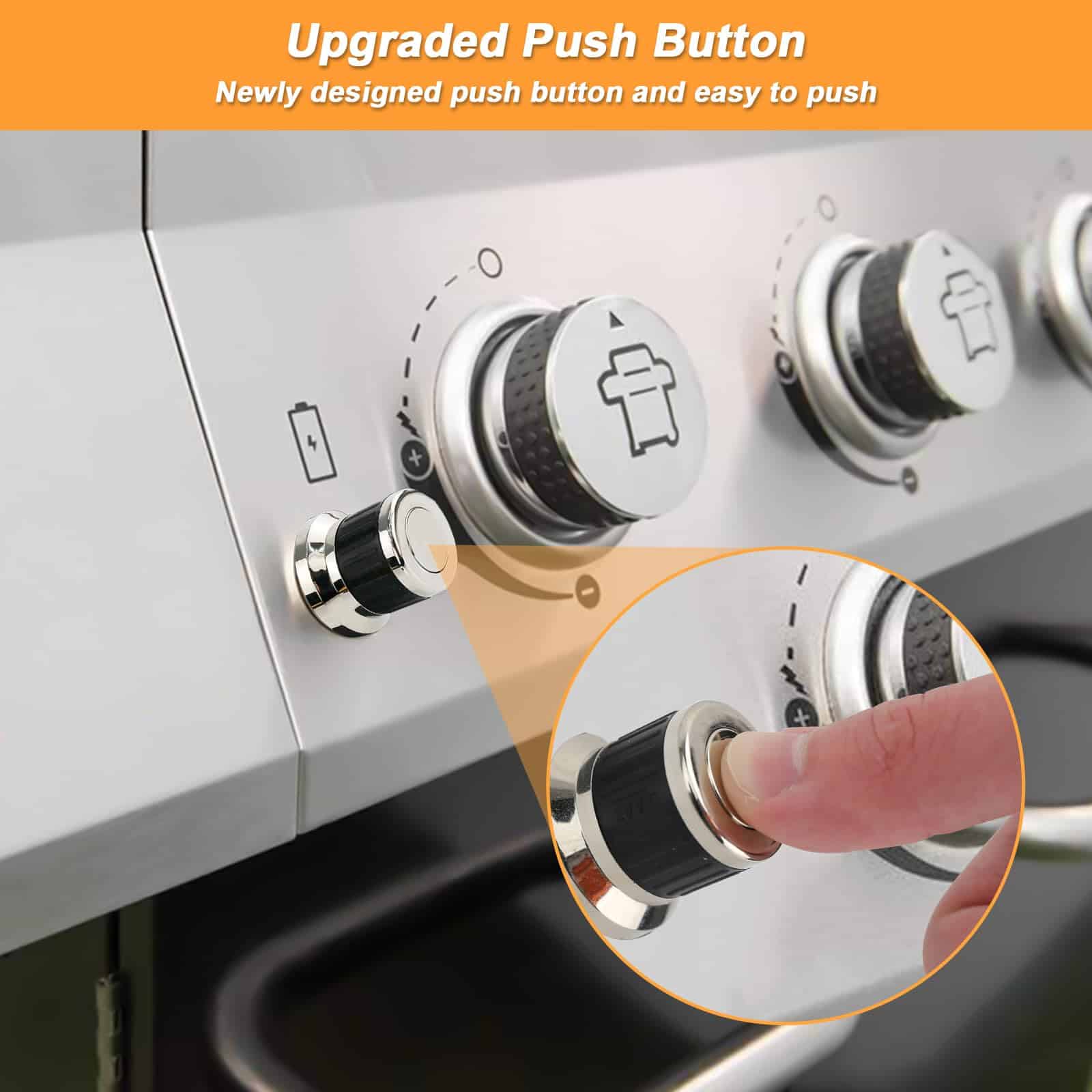 Kit de encendido para parrilla de reemplazo completo para Nexgrill 720-0830X 720-0830H 720-0888. Este kit incluye un botón de presión de 5 salidas (batería no incluida), 4 cables del Ignitor de estilo 1 y 4 cables del Ignitor de estilo 2. El kit de encendido es compatible con una variedad de modelos de Nexgrill, como el 720-0830X, 720-0864R, 720-0888S, 720-0925S, entre otros.