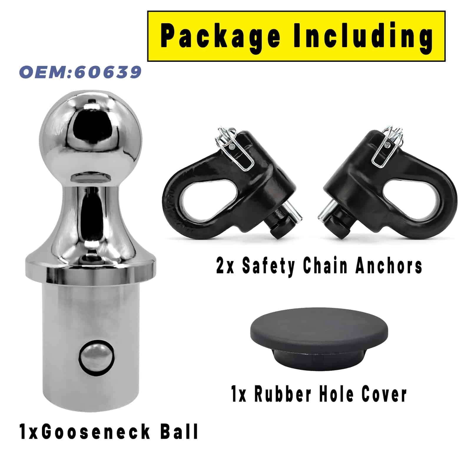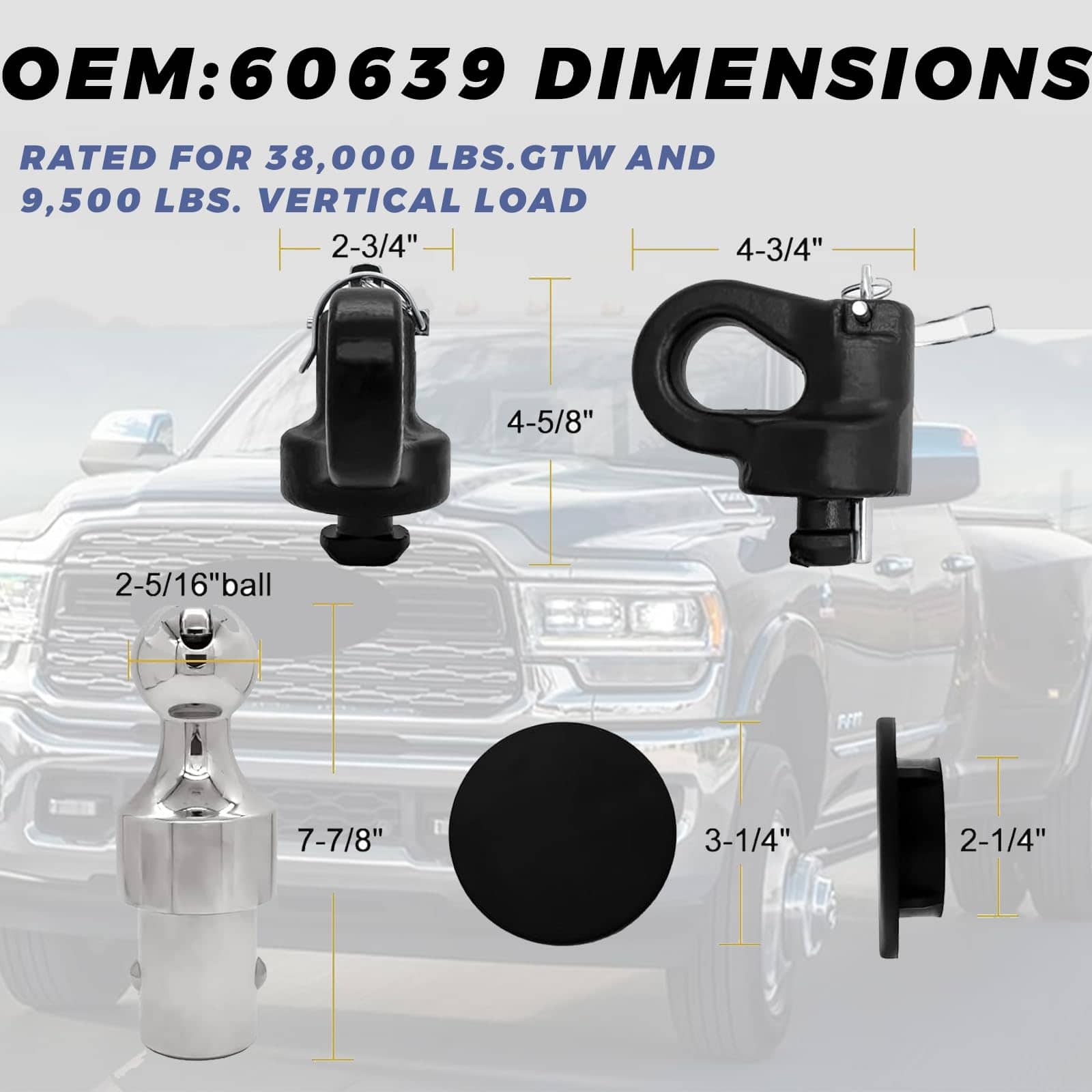 Fits for : The gooseneck ball can fit perfectly for 2013-2024 Ford F-250 Super Duty F-350 Super Duty F-450 Super Duty For 2016-2024 Chevrolet Silverado 2500 HD Silverado 3500 HD For 2016-2024 GMC Sierra 2500 HD Sierra 3500 HD 2016-2024 Nissan Titan XD (OEM Part Number: 60639)