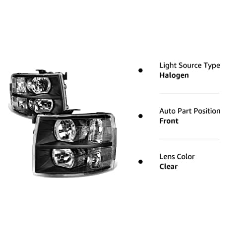 Estilo del faro: Carcasa negra / Lente clara Ubicación: Frontal, Izquierda, Derecha Tipo de ajuste: Reemplazo directo Certificado: SEA y DOT Tipo de bombilla: Halógeno Haz alto: 9005 Haz bajo: 9005 Giro: 4157NA TODAS LAS BOMBILLAS NO ESTÁN INCLUIDAS Ajuste 2007 Silverdao 1500 NUEVO ESTILO DE CARROCERÍA 2008-2013 Silverdao 1500 2007 Silverdao 2500HD NUEVO ESTILO DE CARROCERÍA 2008-2014 Silverdao 2500HD 2007 Silverdao 3500HD NUEVO ESTILO DE CARROCERÍA 2008-2014 Silverdao 3500HD Número de pieza de repuesto OEM: 22853027, 22853028 / 25962804,25962805 PARTSLINK: GM2502280 / GM2503280 HOLLANDER: 114-01012L / 114-01011R El paquete incluye 2 faros (como en la imagen).
