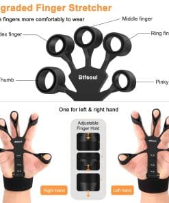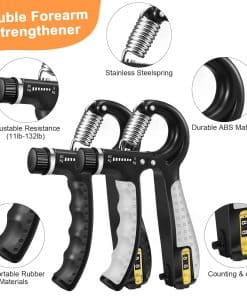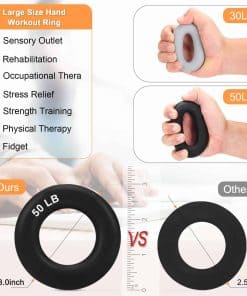 Kit de 8 piezas para fortalecimiento de agarre: 2 fortalecedores de mano ajustables (10-132 lbs), 2 anillos de ejercicio para antebrazos de tamaño grande (negro 50 lb, gris 30 lb), 2 entrenadores de dedos de doble cara (negro pesado: 13 lbs, 17 lbs, 21 lbs y gris claro: 6.6 lbs, 8.8 lbs, 11 lbs), ejercitador de dedos (4 lb) y bola para alivio de estrés. Diseño ergonómico del estirador de dedos: El diseño de calibre de los agujeros para los dedos distingue entre el pulgar y el meñique, lo que lo hace más cómodo de usar (no es necesario distinguir entre manos izquierda y derecha).