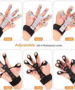 Qué recibirás: 1 Fortalecedor de mano ajustable negro (10-132 lbs), 1 Fortalecedor de mano ajustable gris (10-132 lbs), 1 Anillo de ejercicio para antebrazo de tamaño grande negro (50 lb), 1 Anillo de ejercicio para antebrazo de tamaño grande gris (30 lb), 1 Banda de resistencia para dedos negra pesada (13 lbs, 17 lbs, 21 lbs), 1 Banda de resistencia para dedos gris clara (6.6 lbs, 8.8 lbs, 11 lbs), 1 Ejercitador de dedos (4 lbs), 1 Bola para alivio de estrés. Esta combinación puede satisfacer casi cualquier requisito de entrenamiento para tus dedos, manos, muñecas y antebrazos, con resistencia ajustable y la capacidad de entrenar ambas manos al mismo tiempo.