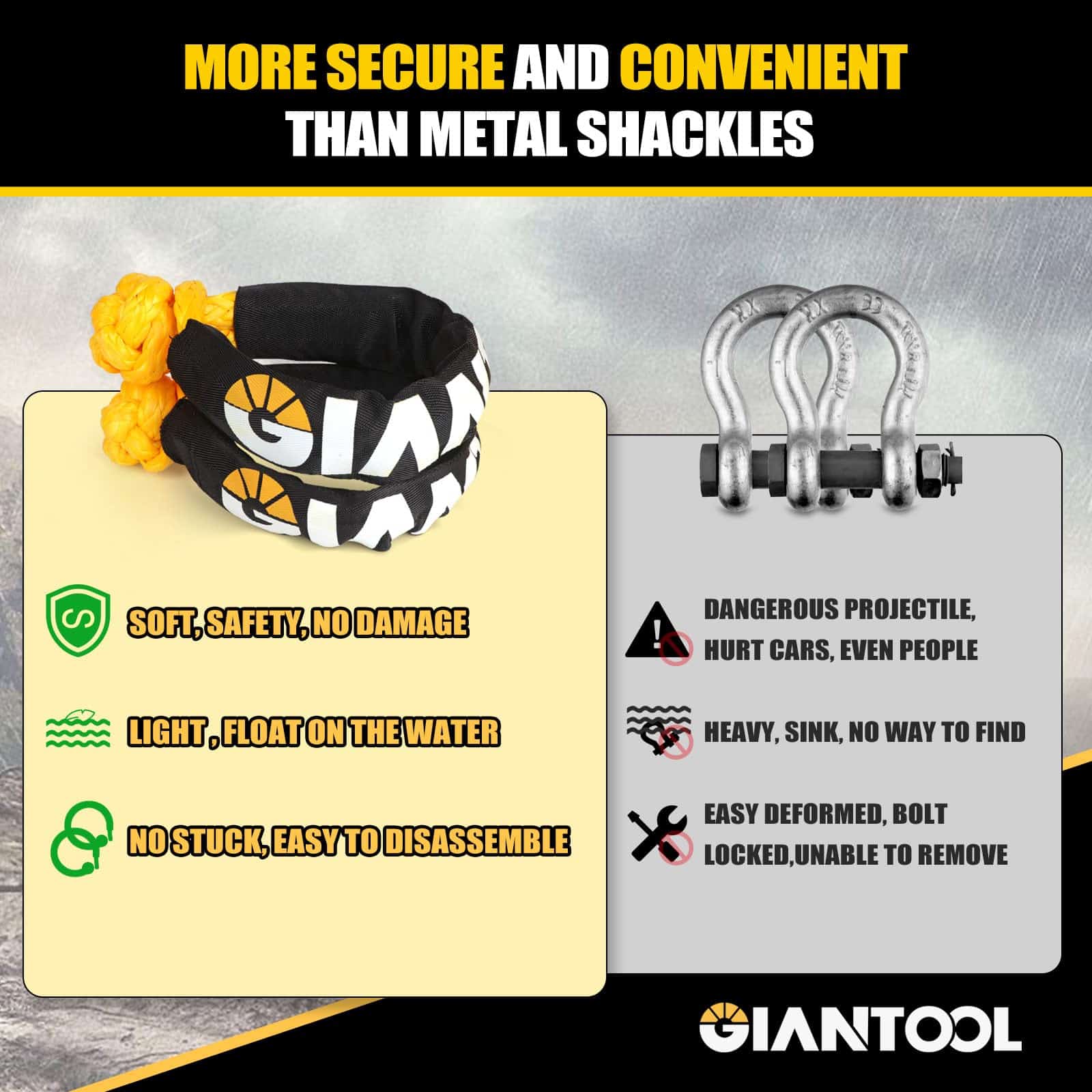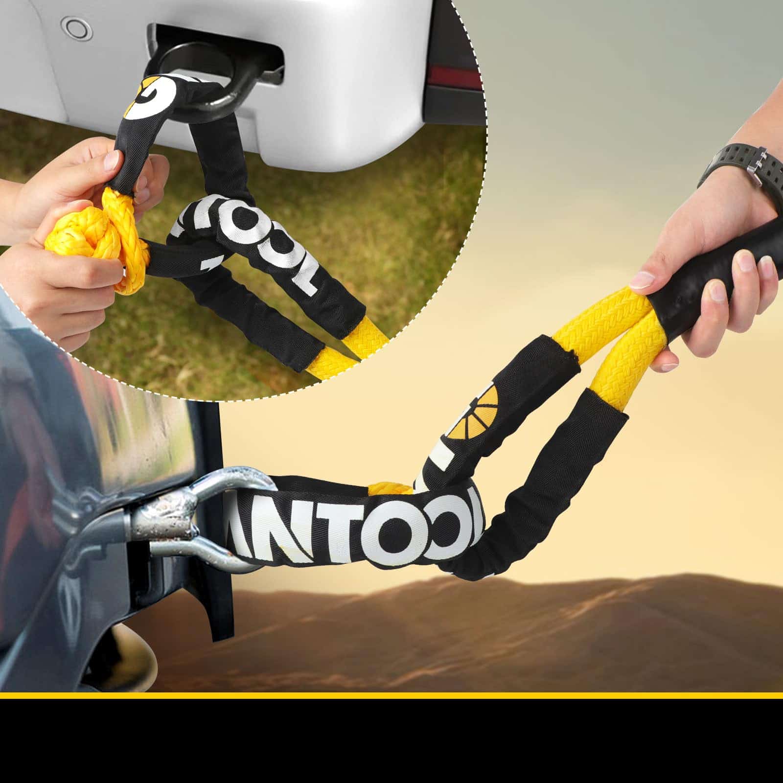 5. Esencial en el coche: Nuestro kit de recuperación de correa de remolque offroad es ideal para su uso con una amplia gama de vehículos, incluidos camiones, jeeps, tractores, SUV, ATV y UTV. Como entusiasta del off-road al aire libre, no querrás ir en tu próxima aventura sin el Kit de Recuperación de Cuerda de Remolque Cinética GIANTOOL.