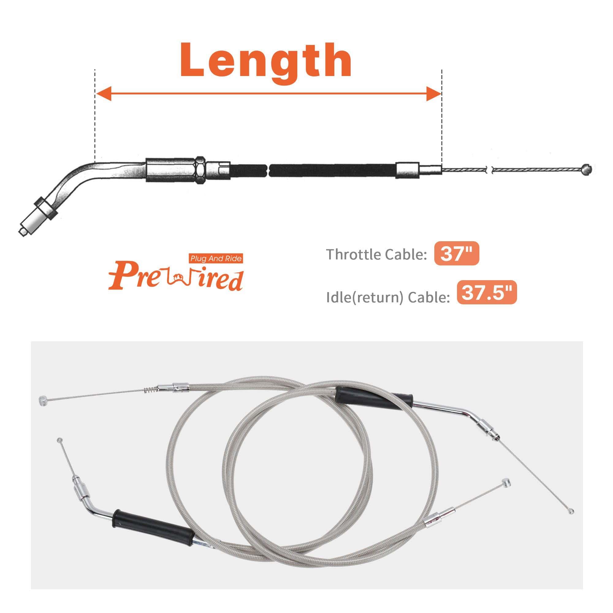 Todo lo que necesitas, sin vueltas: no es necesario correr por la ciudad en busca de cables separados. Nuestro kit de cables de extensión de acelerador Sportster lo tiene todo: cable de 37″ para acelerador, cable de 37.5″ para ralentí (con resorte). Nos preocupamos por ahorrarte tiempo y dolores de cabeza, amigo. Obtén el ajuste perfecto: si estás utilizando manillares más altos o elevadores, nuestro kit te respalda. El cable de acelerador y el cable de ralentí de Sportster en este kit son más largos que tus cables de fábrica. Solo asegúrate de verificar la compatibilidad con el modelo de tu moto antes de la compra, gracias. Resistente y elegante: estamos hablando aquí de cables trenzados de acero inoxidable mejorados, estos cables de acelerador y ralentí de manillares Ape de Sportster no solo son fuertes y gruesos, sino que también son elegantes. No arruinarán las áreas que tocan y ese alambre interno significa que seguirán funcionando durante mucho tiempo. Operación suave: sabes bastante bien esa moto tuya. Bueno, va a volverse mucho más suave y flexible después de la instalación de nuestro kit de cables de acelerador y ralentí de manillares Ape de Sportster. Nuestro kit de cables de acelerador e ralentí extendidos significa que tus paseos van a ser seguros y cómodos, kilómetro tras kilómetro. Nota: Algunas motos de clientes pueden necesitar un kit de cables más largo que la longitud habitual. Eso se debe a cómo sus cables necesitan enrollarse alrededor u otras condiciones. Por favor, confirma la longitud que necesitas antes de la compra, gracias. Lista de paquetes: Incluye 1 cable de acelerador y 1 cable de ralentí (de retorno) como se muestra en la imagen, sin instrucciones. Cualquier pregunta sobre los productos de Prewired, solo envíanos un mensaje, nuestros ingenieros profesionales siempre están en línea para responderte.