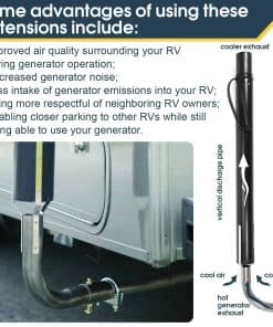Función: Utilizado para extender el escape del generador por encima del RV, reduciendo el ruido del generador y evitando que los humos entren en la autocaravana
