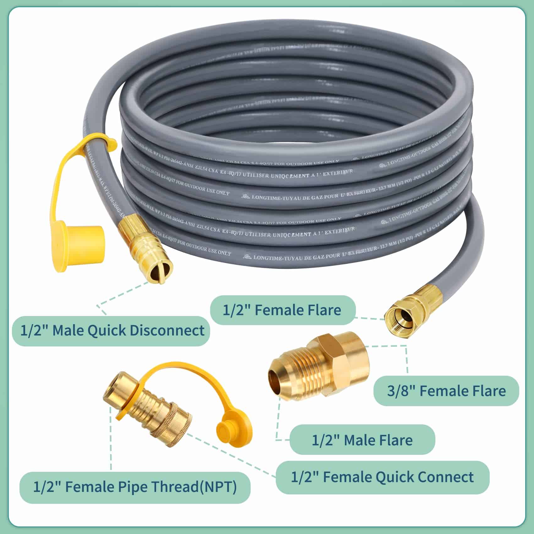 Kit de extensión de manguera de gas natural de 24 pies 1/2