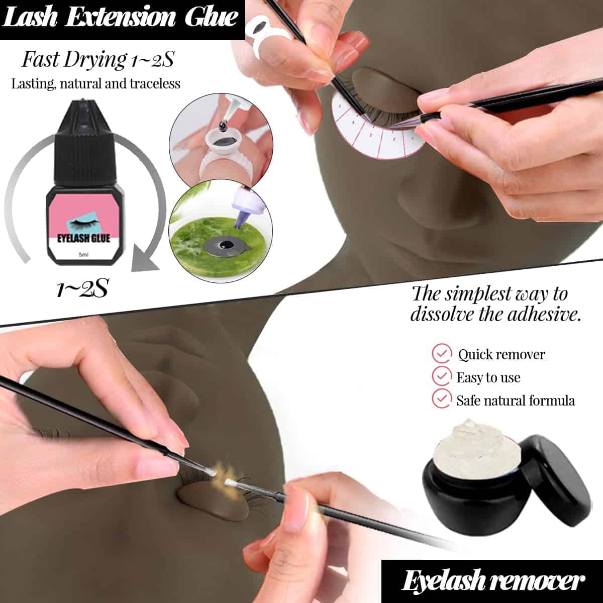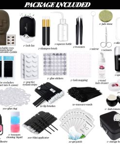 1. Lo que Recibirás: 1 cabeza de maniquí con ojos desmontables con 3 pares adicionales de párpados removibles, 1 ventilador de pestañas, 3 extensiones de pestañas (0.07D, rizo mixto 8 a 15 mm), 1 caja de almacenamiento, 1 aerosol, 10 pares de tiras de extensiones de pestañas, 14 pares de mapas de pestañas, 1 limpiador de pestañas de 60ml, 1 adhesivo de pestañas, 1 líquido limpiador de pinzas, 2 pegatinas de pegamento, 20 almohadillas para ojos, 1 piedra de jade, 1 espejo, 1 tijeras, 2 cintas, 1 removedor de pestañas, 2 pinzas, 2 cepillos de champú, 50 varitas de rímel, 50 pinceles de labios, 100 minicepillos, 1 almohadilla de silicona, 100 anillos de pegamento, 1 botella de exprimir.