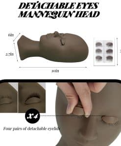 2. Cabeza de Maniquí de Párpados Desmontables de Alta Calidad: Esta cabeza de maniquí de silicona está diseñada según los contornos del cuerpo humano, con una superficie suave y lisa, lo que facilita la extensión de pestañas. Viene con 3 pares adicionales de párpados desmontables y un par de párpados de modelo originales, totalizando 4 pares, lo que puede satisfacer las diversas necesidades de entrenamiento de los operadores de extensiones de pestañas.