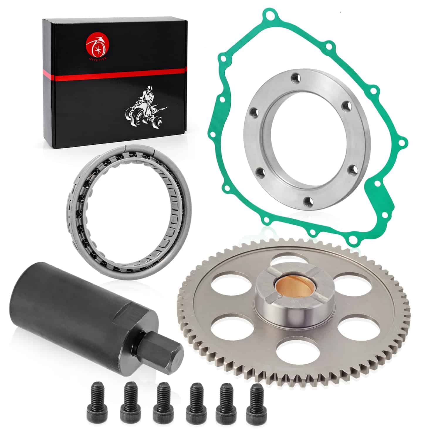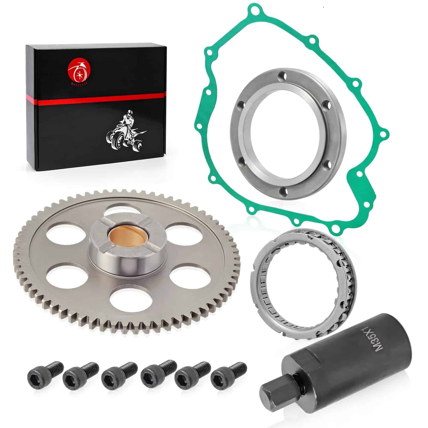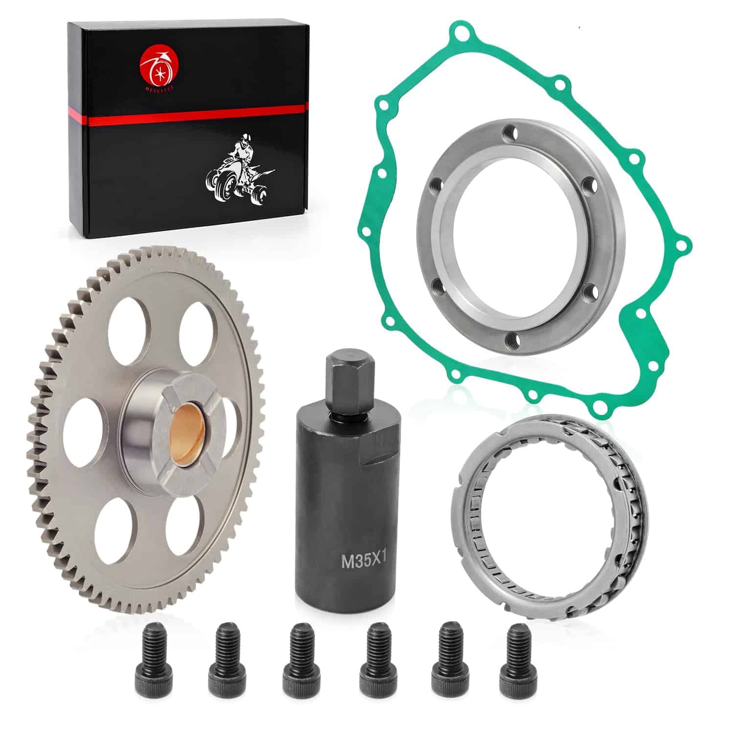 Conjunto de extractor de volante y embrague de arranque locampledor de un sentido para YAMAHA Grizzly 660 2003-2008 Rhino 660 YXR660 2004-2007. Kit incluye: 1x Extractor de volante 1x Embrague de arranque de un sentido, 1x Engranaje Locampledador 67T, 6x Tornillo y 1x JUNTA DE TAPA. Consulte los modelos compatibles, imágenes y números de OEM en nuestra página para ayudarlo a tomar su elección. Servicio postventa: Cada producto comprado viene con servicio al cliente amigable las 24 horas y 1 año de garantía del producto.