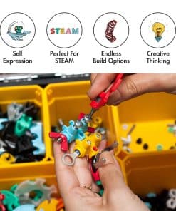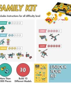 1. Estimula el pensamiento creativo en conjunto: ¡Es un asunto familiar! Con más de 1000 tuercas, pernos y piezas de formas coloridas, este kit stem incluye suficientes piezas para entretener a un grupo de niños, cuidadores y amigos. Fomente la imaginación de su hijo y sus habilidades de ingeniería con este kit de construcción de robot con tuercas y pernos que animan a los niños a explorar infinitas posibilidades de diseño, haciendo que cada momento de juego sea una aventura en innovación.