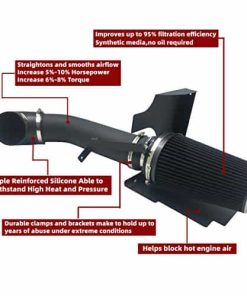 Si necesitas la adición de filtro de aire frío perfecto para mejorar el par motor y la eficiencia de tu motor, el Kit de Admisión de Aire OBUYTO es una adición perfecta. La presencia del filtro de aire frío adecuado puede marcar la diferencia en el rendimiento de tu camioneta. Por eso recomendamos este producto, ya que viene con increíbles características para hacer que el funcionamiento del motor de tu automóvil sea efectivo. Con esta admisión de aire fría, los usuarios disfrutarán de una economía de combustible mejorada que se traduce en un flujo incrementado del 64%. Esto aumenta un 8-10% de potencia y par motor dándote un impulso agradable también. Es fácil de instalar y se ajusta perfectamente a tu motor después de la instalación. Compatibilidad: Apto para Cadillac Escalade 2002-2006 con motor V8 de 5.3L/6.0L Apto para Avalanche 1500 2002-2006 con motor V8 de 5.3L Apto para Suburban 1500/2500 2000-2006 con motor V8 de 5.3L/6.0L Apto para Tahoe 2000-2006 con motor V8 de 4.8L/5.3L Apto para Silverado 1500 / 1500 HD 1999-2006 con motor 4.8L/5.3L/6.0L Apto para Silverado 2500 / 2500 HD 1999-2006 con motor V8 de 5.3L/6.0L Apto para Silverado 3500 2001-2006 con motor V8 de 6.0L Apto para Silverado SS 2003-2006 con motor V8 de 6.0L Apto para Sierra 1500 / 1500 HD de GMC 1999-2006 con motor 4.8L/5.3L/6.0L Apto para Sierra 2500 / 2500 HD de GMC 1999-2006 con motor V8 de 5.3L/6.0L Apto para Sierra 3500 2001-2006 con motor V8 de 6.0L Apto para Sierra Denali 2002-2006 con motor V8 de 6.0L Apto para Yukon Denali 2001-2006 con motor V8 de 6.0L Apto para Yukon Denali XL 2001-2006 con motor V8 de 6.0L Apto para Yukon Denali XL 1500 2002-2006 con motor V8 de 5.3L Apto para Yukon Denali XL 2500 2002-2006 con motor V8 de 6.0L Incluye: 1x Protector Térmico de Acero 1x Filtro de Aire de Alto Flujo 1x Acoplador de Silicona de 4″ de Alta Calidad 1x Acoplador de Silicona de 4″ de Alta Calidad 90 y todas las piezas necesarias.