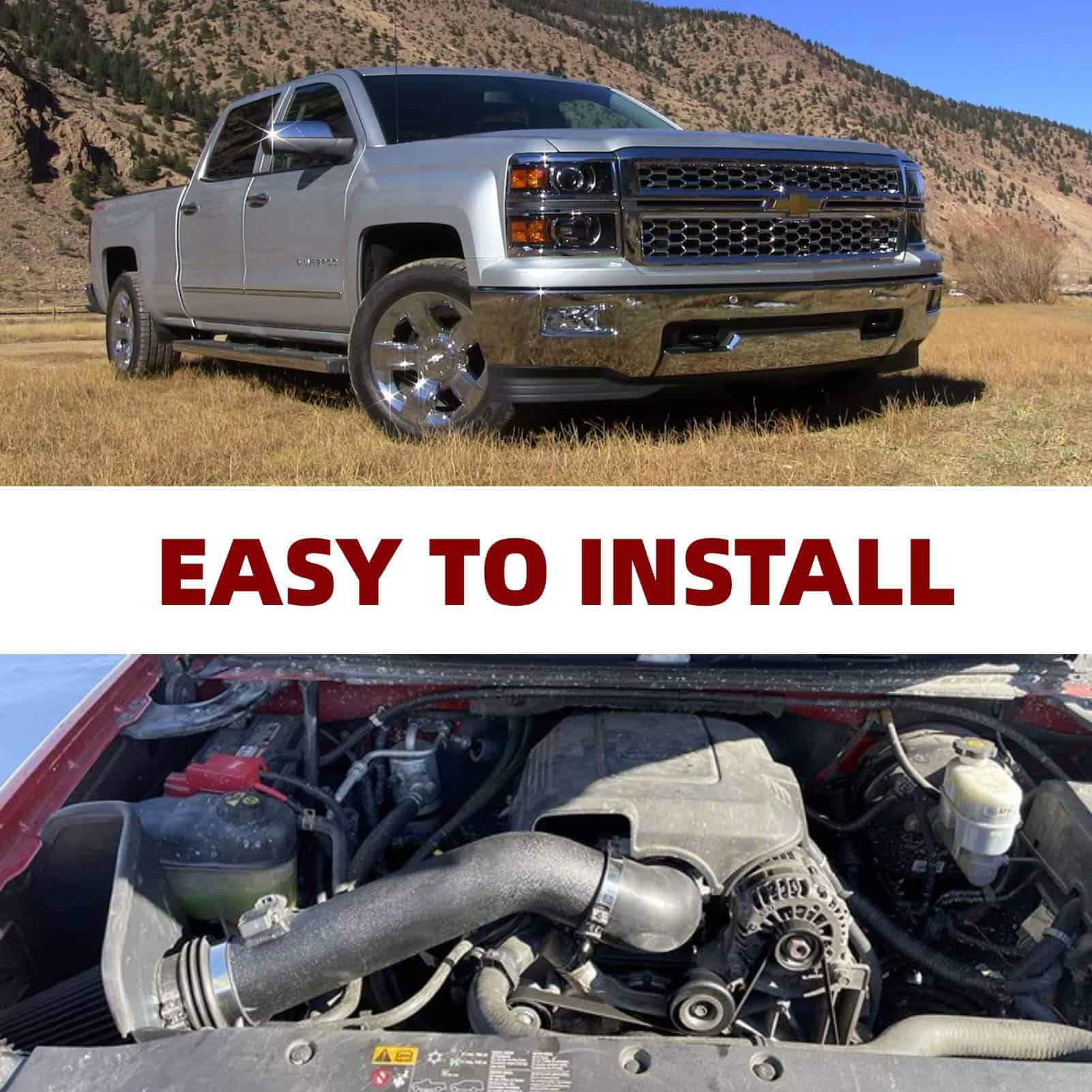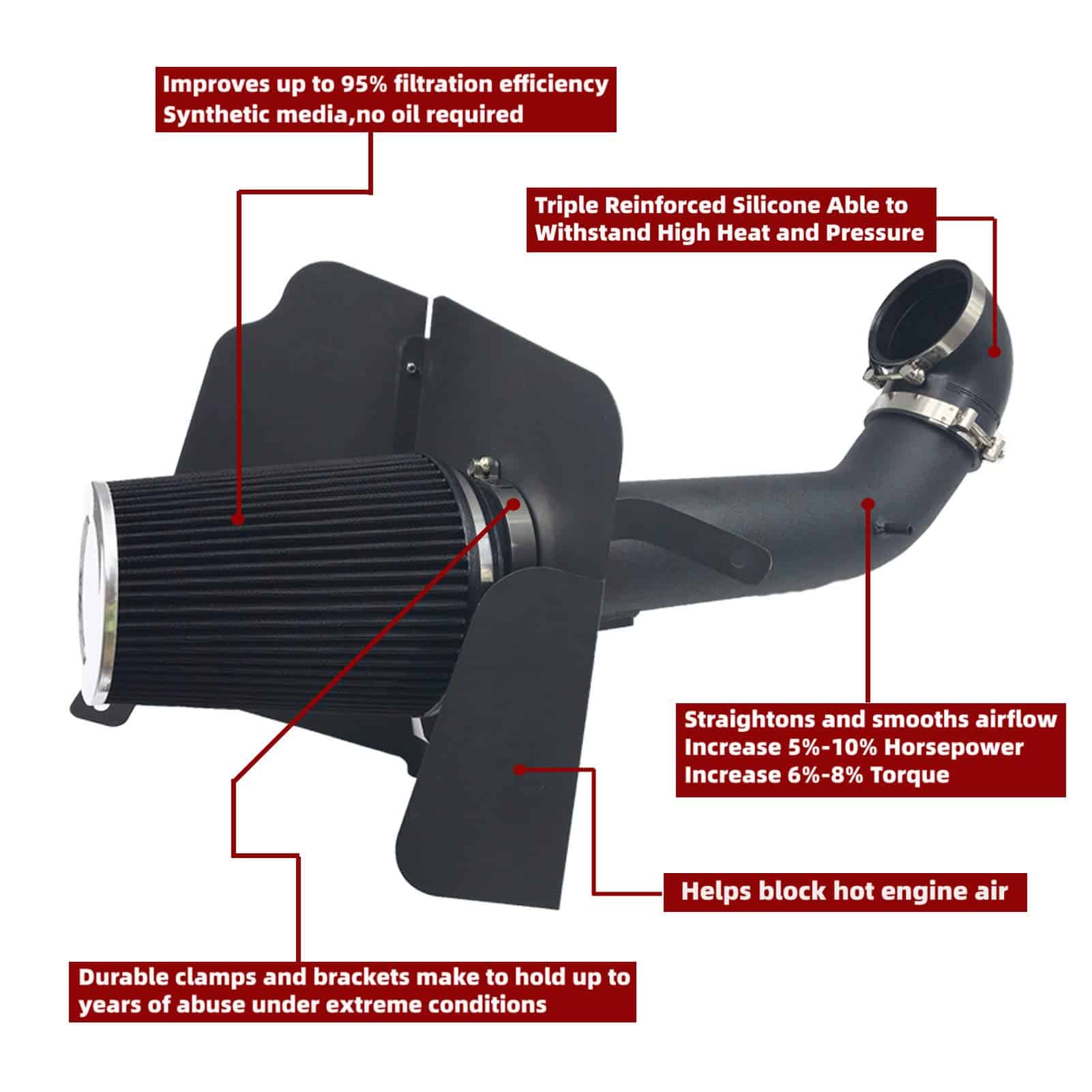 Es el ajuste ideal para GMC / Silverado / Sierra / 2009-2014 V8 4.8L / 5.3L / 6.0L / 6.2L. Con nuestro sistema de admisión de aire frío, puede lograr un flujo más eficiente y mejor en comparación con el de fábrica. La configuración tradicional de flujo de aire es pequeña, restringida y limita el rendimiento de su vehículo, pero una admisión de aire frío ayudará a mejorar el rendimiento de su vehículo.
