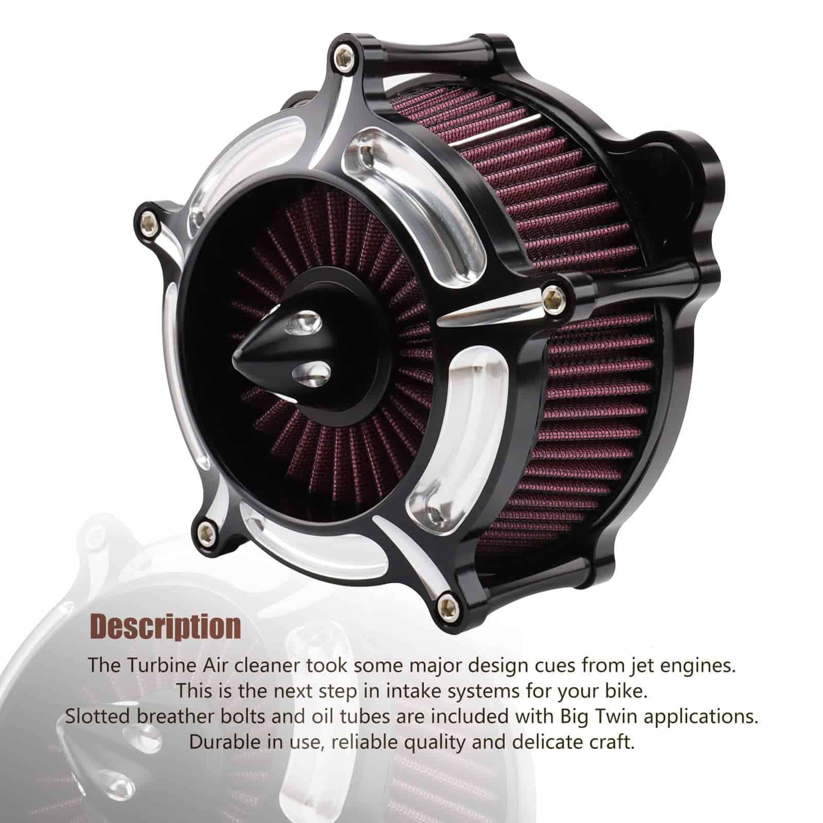 – Placa de respaldo promueve un flujo de aire suave hacia el carburador/cuerpo del acelerador