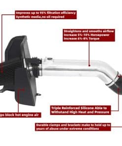 Si necesitas la adición perfecta de filtro de entrada de aire frío para mejorar el torque y la eficiencia de tu motor, el Kit de Entrada de Aire OBUTO es una adición perfecta. Contar con el filtro de aire frío adecuado puede marcar la diferencia en el rendimiento de tu camioneta. Es por eso que recomendamos este producto, ya que cuenta con características increíbles para hacer que la operación del motor de tu automóvil sea efectiva. Con este filtro de aire frío, los usuarios disfrutarán de una mejora en la economía de combustible que se traduce en un flujo aumentado en un 64%. Esto se traduce en un aumento del 8-10% en potencia y torque, brindándote un impulso agradable. Es fácil de instalar y se adapta perfectamente a tu motor después de la instalación. Es la opción ideal para GMC / Silverado / Sierra / Cadillac 2009-2014 V8 4.8L / 5.3L / 6.0L / 6.2L. Con nuestro filtro de aire frío, puedes lograr un flujo mejor y más eficiente en comparación con el de fábrica. El montaje tradicional de flujo de aire es pequeño, restringido y limita el rendimiento de tu vehículo, pero un filtro de aire frío ayudará a mejorar el rendimiento de tu vehículo.