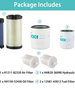 Paquete incluye: 1 x Filtro de Aire K1211-82320 1 x Filtro de Aceite HH150-32430 1 x Filtro Hidráulico HHK20-36990 2 x Filtro de Combustible 12581-43012