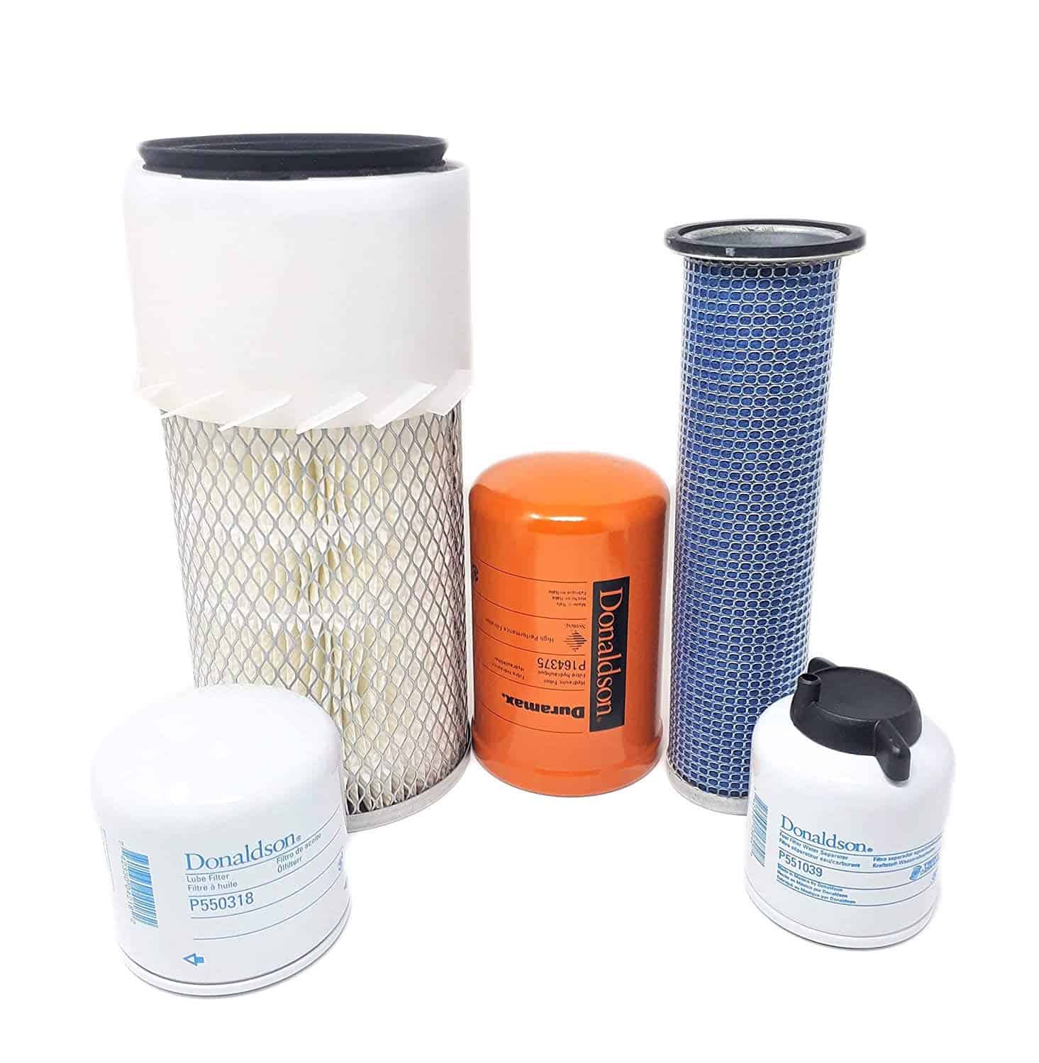 Filtros incluidos: (1) Reemplazo de lubricante 6675517 (1) Separador de agua de combustible 6667352 (1) Filtro de aire (Exterior) 6598492 (1) Filtro de aire (Interior) 6598362 (1) Hidráulico 6661248