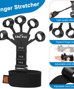 2 Nuevo Estirador de Dedos: Hecho de material de silicona de alta calidad (resistente al calor), con una hebilla en forma de nueve de alta dureza, correa de muñeca (hecha de tela de nylon suave y amigable con la piel), y 6 niveles de resistencia para entrenamiento de dedos.