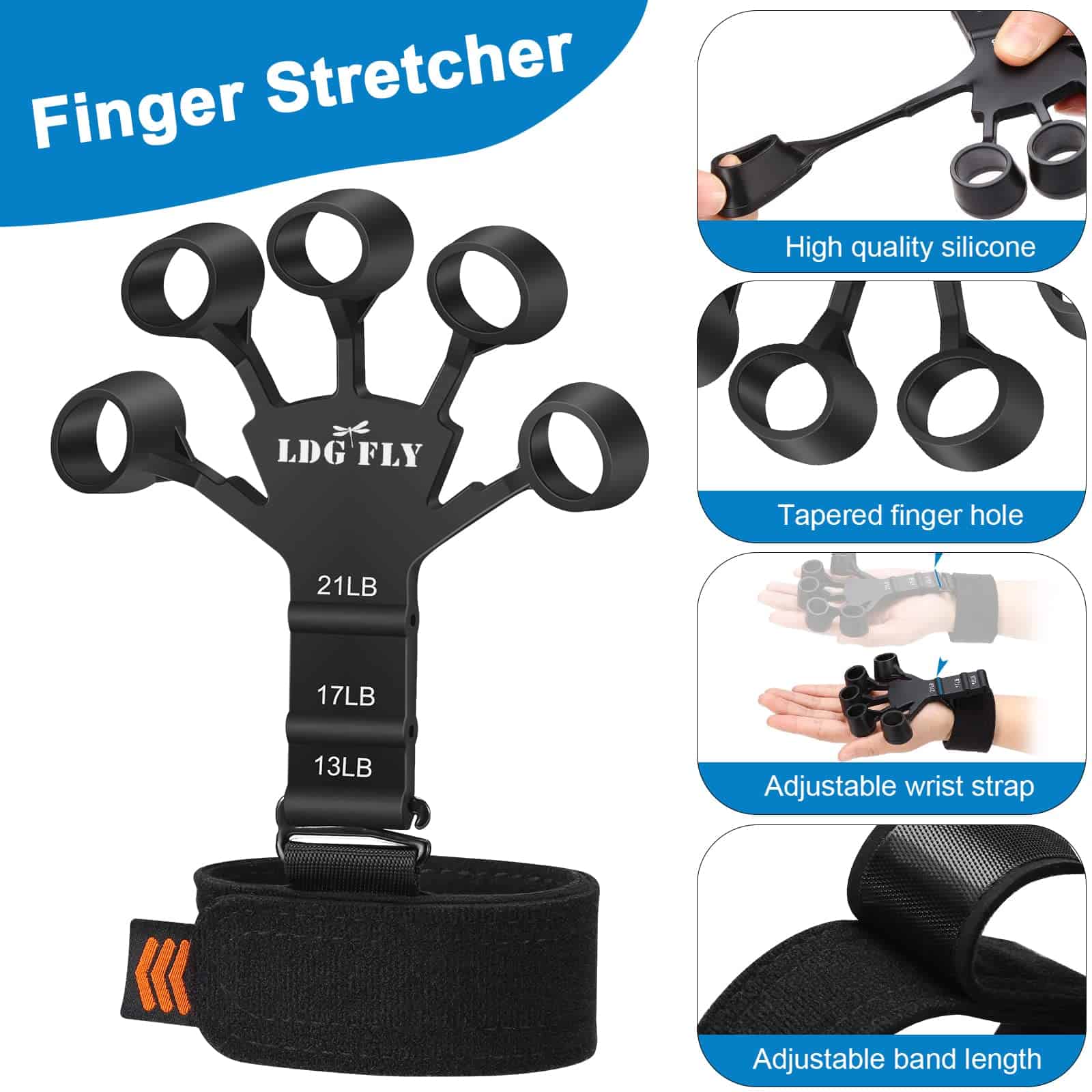 3 Ejercitador de Dedos: Resistencia fija, 4 libras por dedo.
