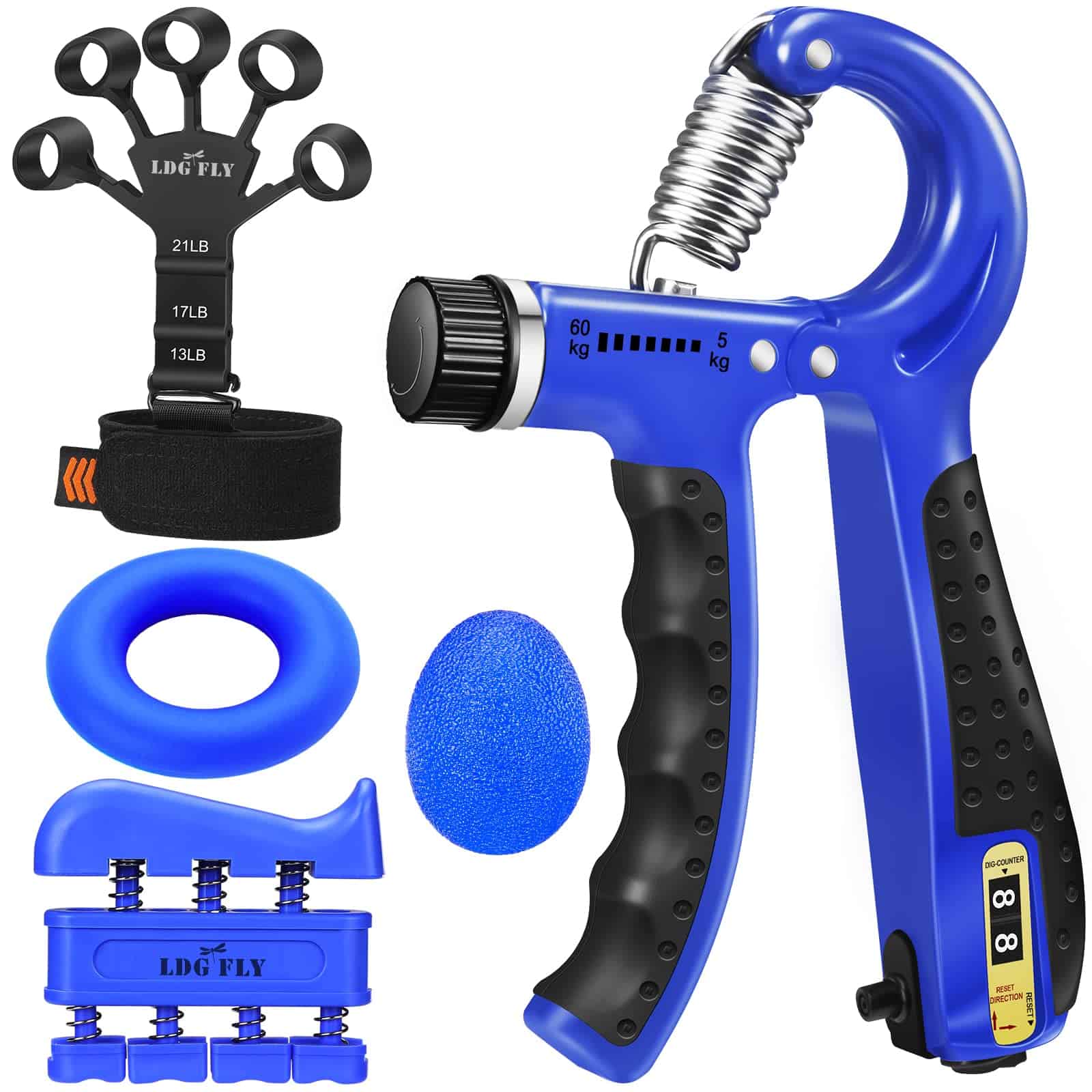 1 Apretador de Mano: Resorte de acero inoxidable de alta intensidad, botón giratorio mejorado para ajuste fácil de 11 a 132 libras, mango de TPR antideslizante para un agarre firme, y es contable.