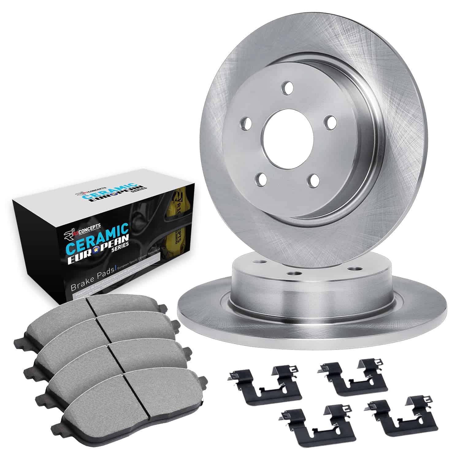 R1 Concepts Rear Brakes and Rotors Kit |Rear Brake Pads| Brake Rotors and Pads| Euro Ceramic Brake Pads and Rotors| Hardware Kit|fits 1997-2002 Audi A6; Volkswagen Passat