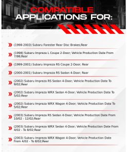 El kit de frenos traseros y discos R1 Concepts es la solución completa todo en uno para la sustitución de los frenos de tu Subaru Forester o Impreza del año 1998 al 2003. Este kit incluye discos de freno de alto rendimiento, pastillas de freno de rendimiento y hardware necesario para una instalación sin complicaciones. Los discos de freno están formulados con especificaciones de hierro fundido G3000/G11H18 para garantizar durabilidad, confiabilidad y estabilidad, cumpliendo con las especificaciones OEM. Además, cada disco tiene un acabado no direccional que favorece un asentamiento rápido y uniforme de las pastillas de freno, proporcionando paradas más silenciosas y suaves para un rendimiento de frenado consistente a lo largo del tiempo. Las pastillas de freno incluidas vienen con amortiguadores para eliminar el ruido y están formuladas con cerámica especial libre de amianto y baja en polvo, lo que las convierte en una excelente opción para la sustitución de las pastillas delanteras y traseras. La fabricación con múltiples aleaciones mejora la disipación del calor y el rendimiento, mientras que el equilibrado en el molino asegura el correcto funcionamiento de los discos. Este kit de frenos traseros y discos de R1 Concepts te brinda calidad confiable y validada para una conducción segura y sin preocupaciones.