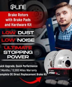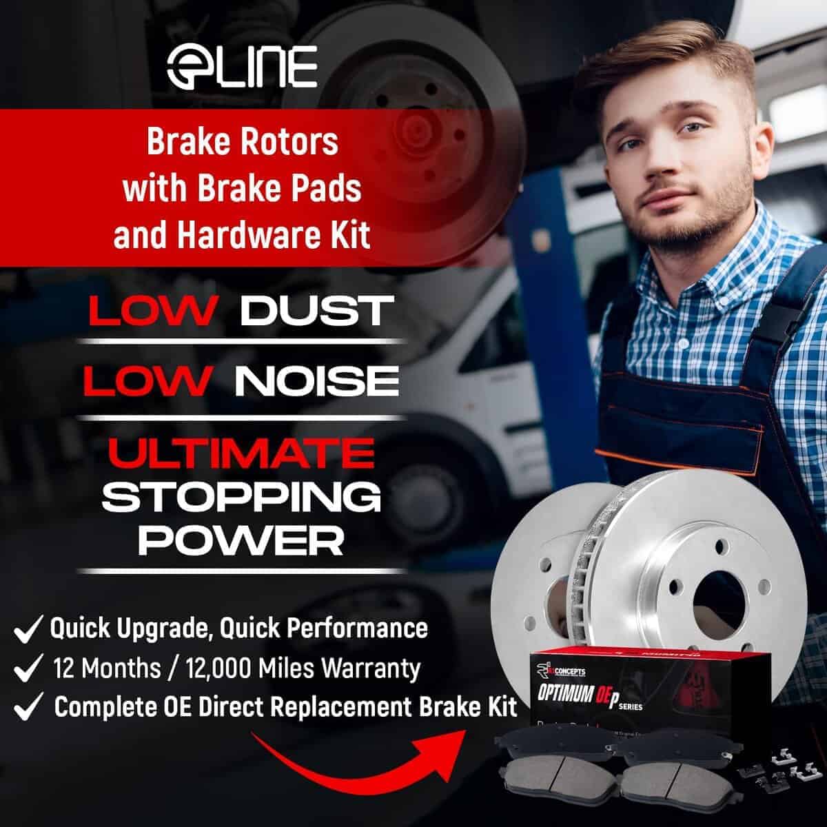 1. Kit de Frenos Completo de Repuesto Todo en Uno: El kit de frenos de la Serie eLine de R1 Concepts viene con (2) discos de freno de alto rendimiento, (4) pastillas de freno de rendimiento y hardware.