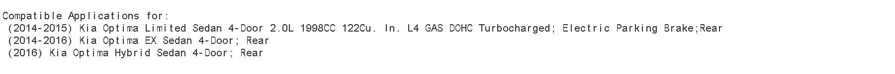 (2014-2015) Kia Optima Limited Sedán 4 puertas 2.0L 1998CC 122Cu. En. L4 Gas DOHC Turboalimentado; Freno de Estacionamiento Eléctrico; Trasero