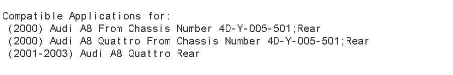 Kit de Frenos y Discos Traseros de R1 Concepts | Pastillas de Freno Traseras | Discos y Pastillas de Frenos | Pastillas de Freno y Discos OEp Óptimos | Kit de Hardware | Compatible con Audi A8, A8 Quattro 2000-2003. El Kit de Frenos de la Serie eLine de R1 Concepts es un kit completo de reemplazo de frenos que incluye (2) discos de freno de alto rendimiento, (4) pastillas de freno de rendimiento y hardware. Los discos de freno de alto rendimiento están fabricados con hierro fundido de grado G3000 con protección contra el óxido para una protección definitiva contra el óxido. Construidos con especificaciones O.E.M en mente, no se requiere modificación para la instalación. Las pastillas de freno vienen con amortiguadores para eliminar el ruido y están formuladas sin asbesto para proporcionar una excelente resistencia a la decoloración. Fabricados con múltiples aleaciones para mejorar la disipación de calor y el rendimiento, estos discos de freno están equilibrados en el molino para una función adecuada. Validados para garantizar una metalurgia correcta y un grosor adecuado de la placa de freno, son la mejor opción para el reemplazo de pastillas de freno delanteras y traseras. ¡Confíe en la calidad confiable de los productos de freno de R1 Concepts!