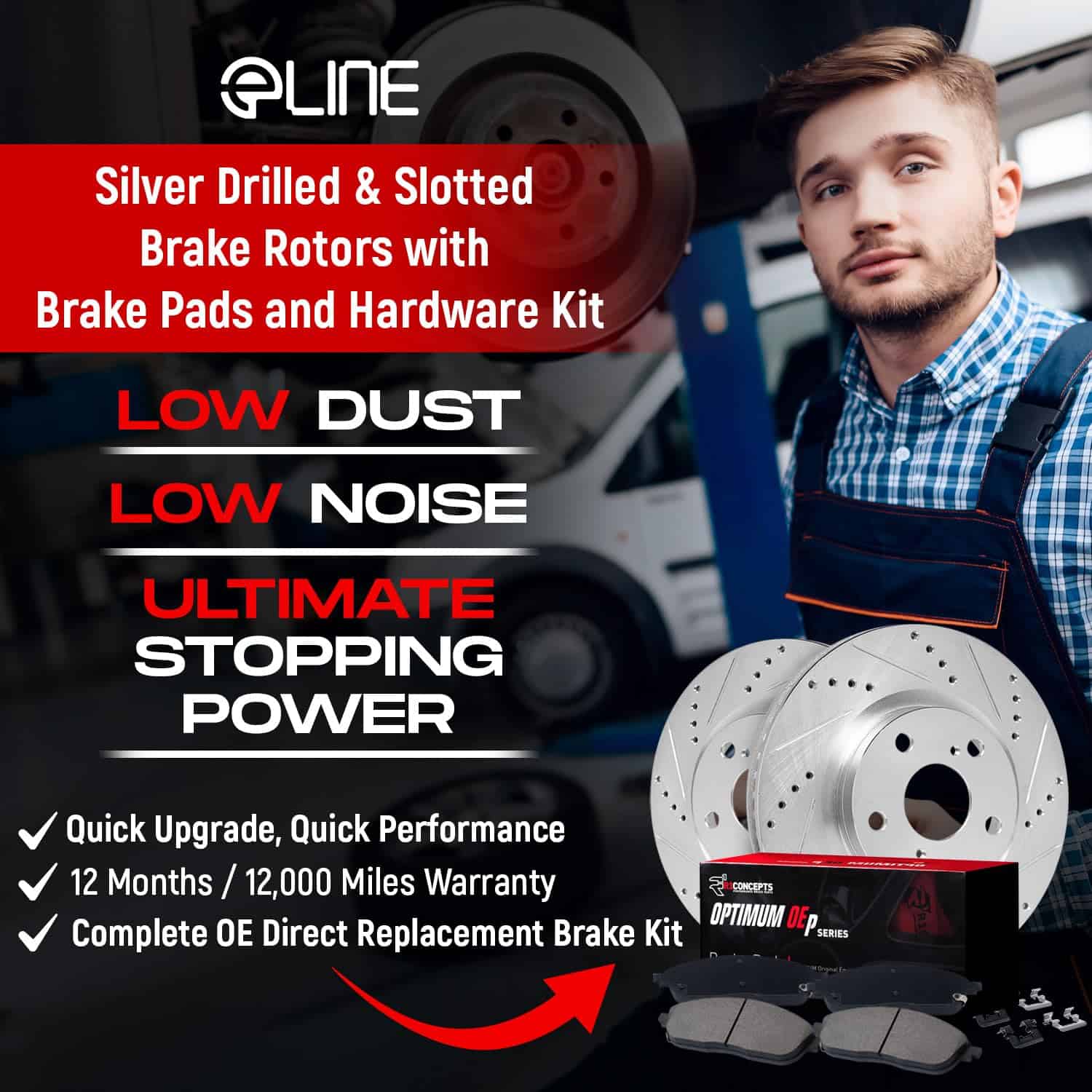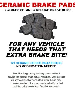 1. Kit de Frenos Completo Todo-en-Uno: El Kit de Frenos de la Serie Carbono de R1 Concepts viene con (2) discos de freno de alto rendimiento, (4) pastillas de freno de rendimiento y hardware.