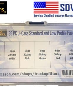Kit de 36 fusibles automotrices de estilo OEM lento compatible con JCASE low y tall profile. Incluye 3 de cada fusible LOW y 3 de cada fusible TALL de 20 amperios, 25 amperios, 30 amperios, 40 amperios, 50 amperios y 60 amperios. Estos fusibles se utilizan comúnmente en camionetas, SUVs y automóviles tanto extranjeros como nacionales. Comúnmente utilizados para reemplazar los fusibles quemados de energía y control de frenos de remolque en su vehículo. Compatible con varias marcas y modelos.