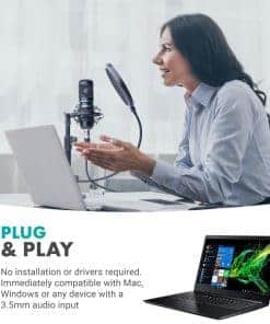 Kit de grabación de podcast para smartphone Movo – ¡Eleva tu calidad de audio a otro nivel con este increíble bundle! Este kit incluye 2 micrófonos de condensador, 2 soportes de micrófono de escritorio, 2 filtros antipop y una interfaz XLR de 2 canales con salida USB tipo C. Conecta directamente a tus dispositivos Android para grabaciones de calidad profesional. El micrófono cardioide versátil graba con una resolución de sonido de calidad de emisión de 48 kHz / 16 bits sin latencia, con una potente respuesta de frecuencia de 20Hz a 20kHz. El filtro antipop de doble capa de malla elimina el ruido de manera más efectiva que los filtros antipop estándar. El soporte de micrófono de mesa de acero sólido es ajustable para adaptarse a todas tus necesidades de micrófono de mesa. Con garantía de 1 año para tu tranquilidad, ¡este kit es ideal para grabar podcasts, entrevistas y mucho más con la máxima calidad!