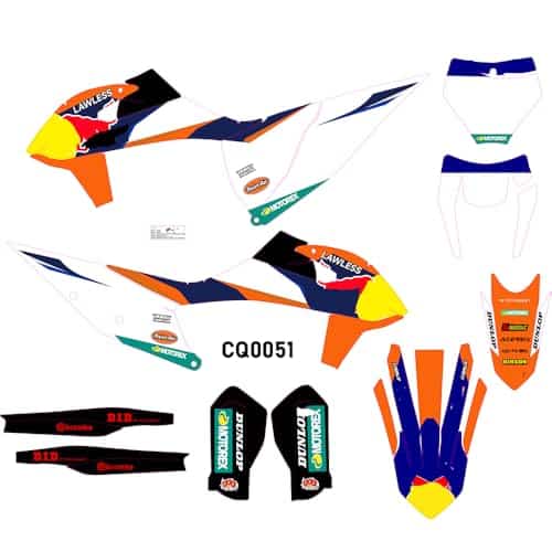 Característica: Impresión de pantalla de seda en la superficie inferior, superficie lisa y muy buena protección anti-UV. Hecho de vinilo altamente duradero, ultra flexible, a prueba de golpes, el grosor es de 28MIL, excelente resistencia a los arañazos. Condición: Nuevo. Los gráficos incluyen: gráficos de cubiertas de radiador, calcomanías para guardabarros delantero y trasero, calcomanías para horquilla inferior, calcomanías para basculante, fondos de paneles laterales delantero, izquierdo y derecho. Apto para kit de calcomanías de motocicleta personalizado GRAPHICS DECALS FOR ktmEXC XC XCF 150 250 300 350 450 500 2020 2021 y SX SXF 2019 2020