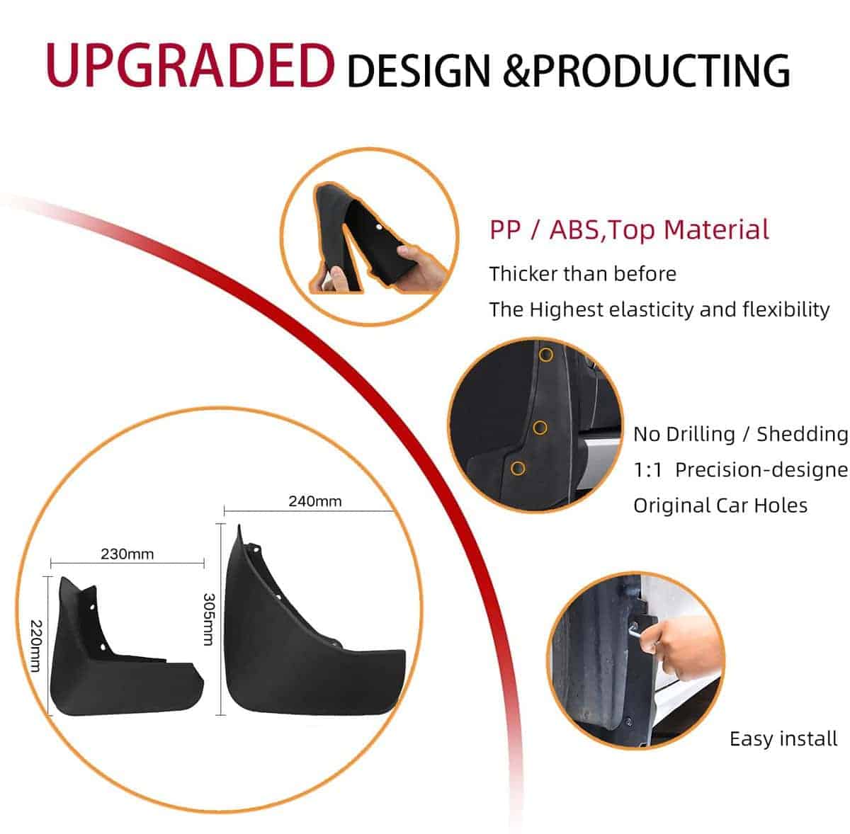 3. Mejor protector de salpicaduras de barro y garantía de un año – Material PP de primera calidad, resistencia a altas temperaturas, resistencia a la oxidación, alta elasticidad y resistencia al impacto.