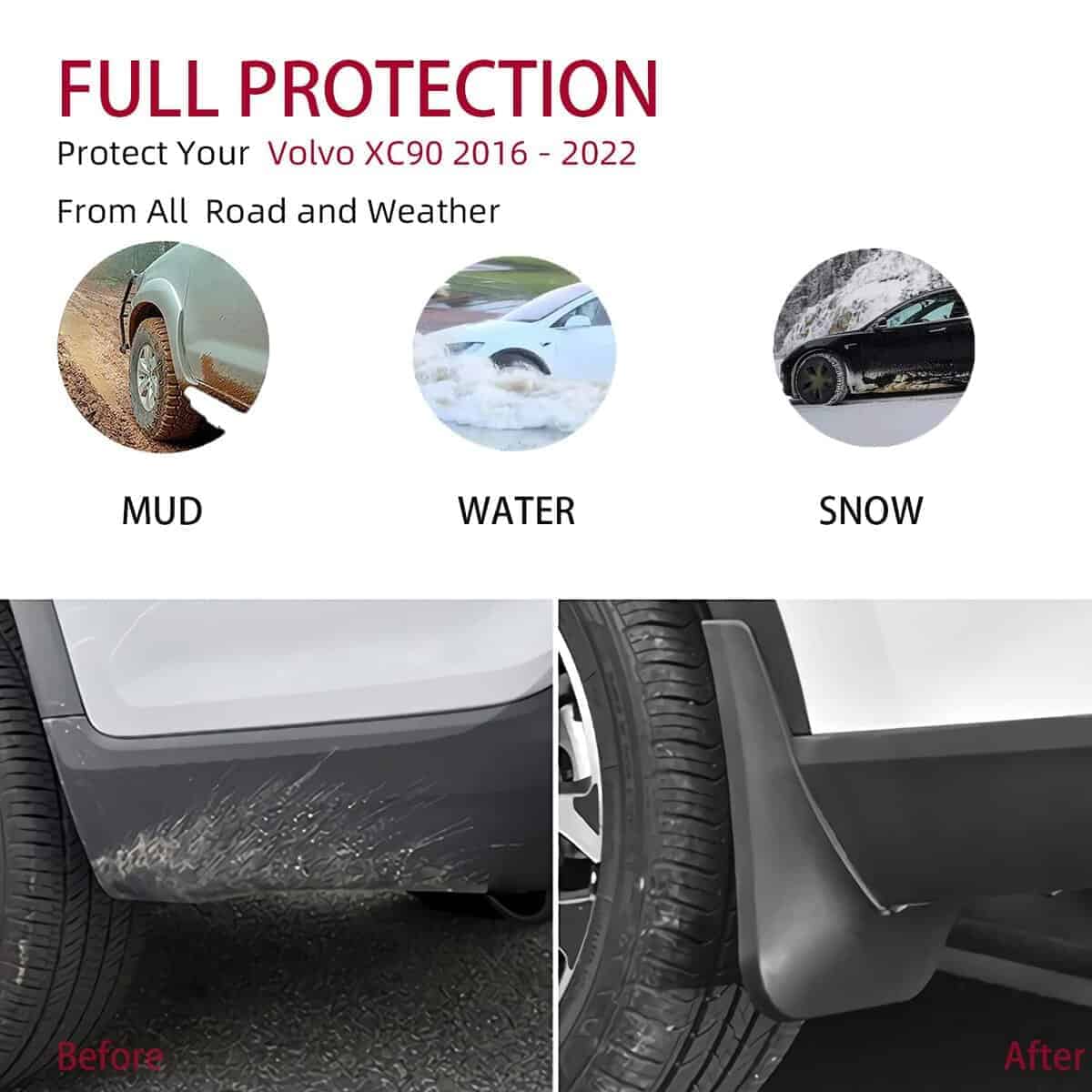 1. Guardabarros actualizados – Se adapta a Volvo XC90 2016-2021, no es universal.