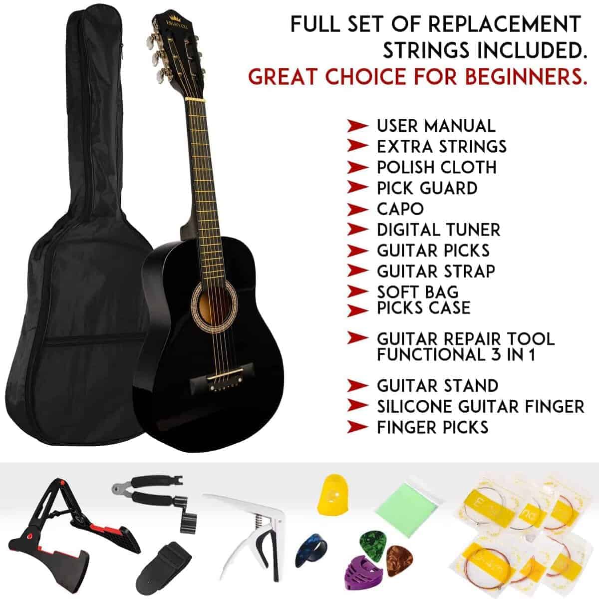 Kit de Guitarra Acústica BESYOU para Principiantes de 38